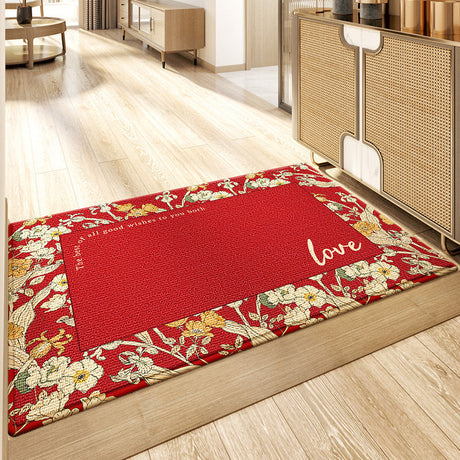 Feblilac Red Love and Flowers Polyester Door Mat