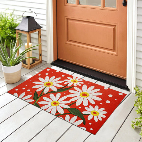 Feblilac Red White Daisy Handmade Tufted Acrylic Livingroom Carpet Area Rug
