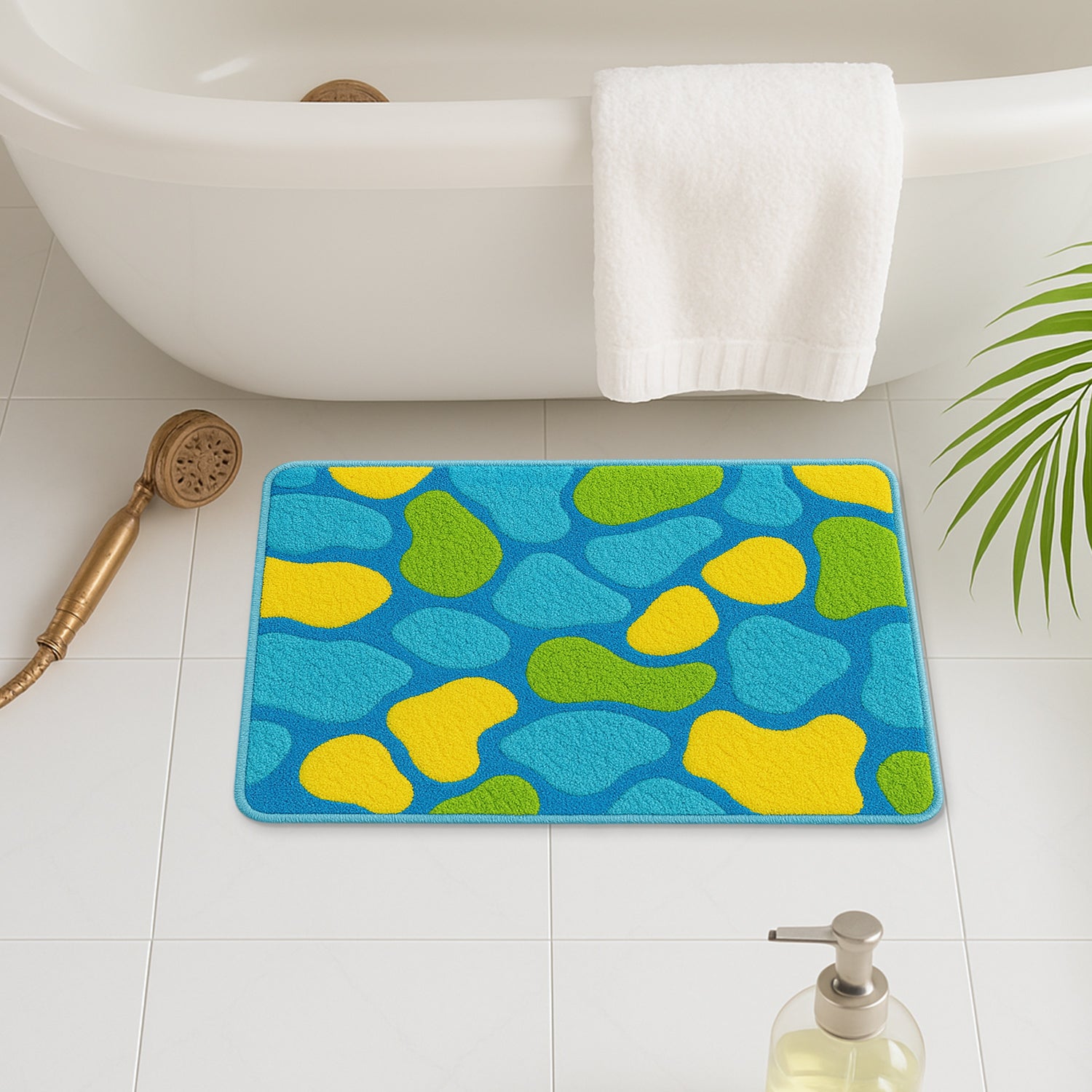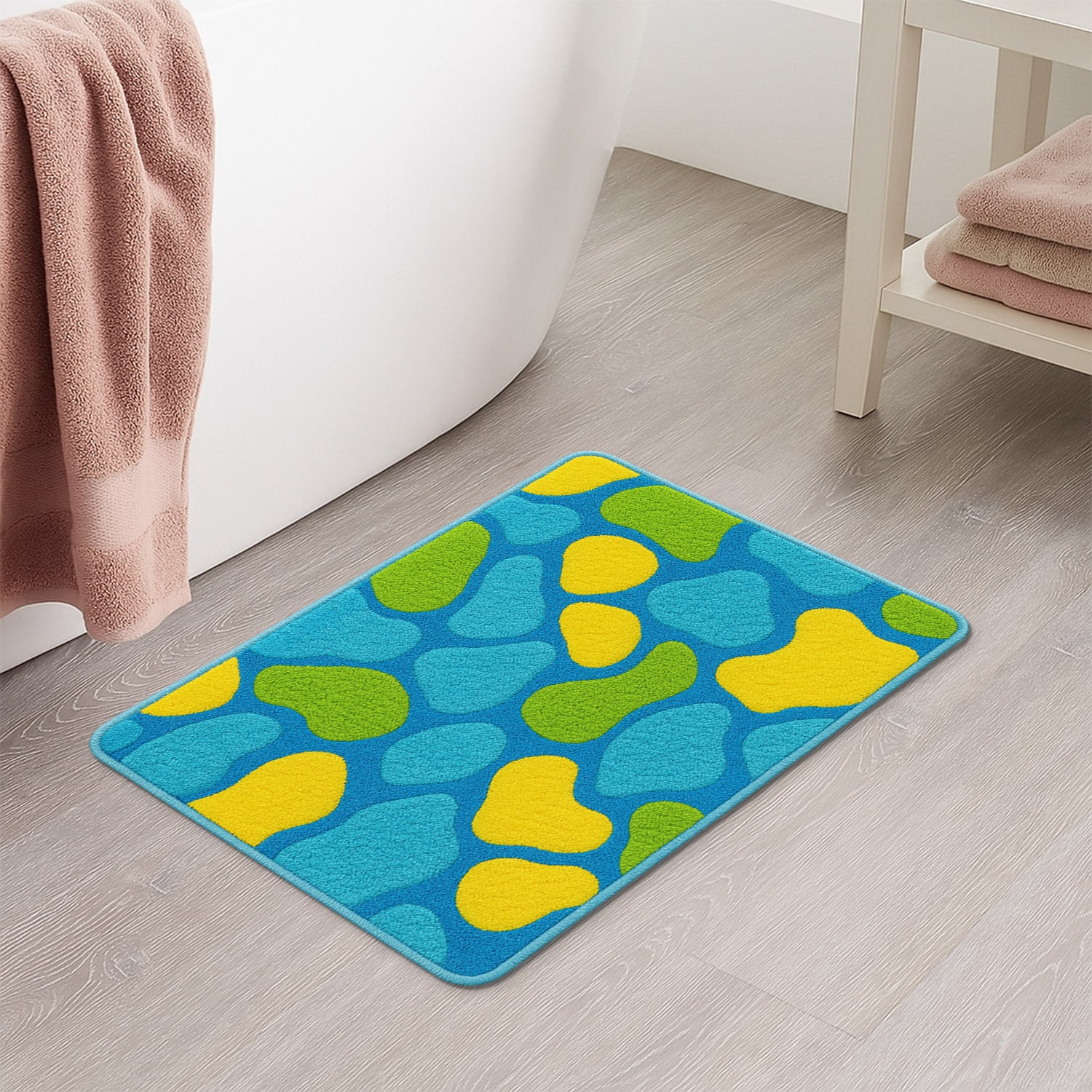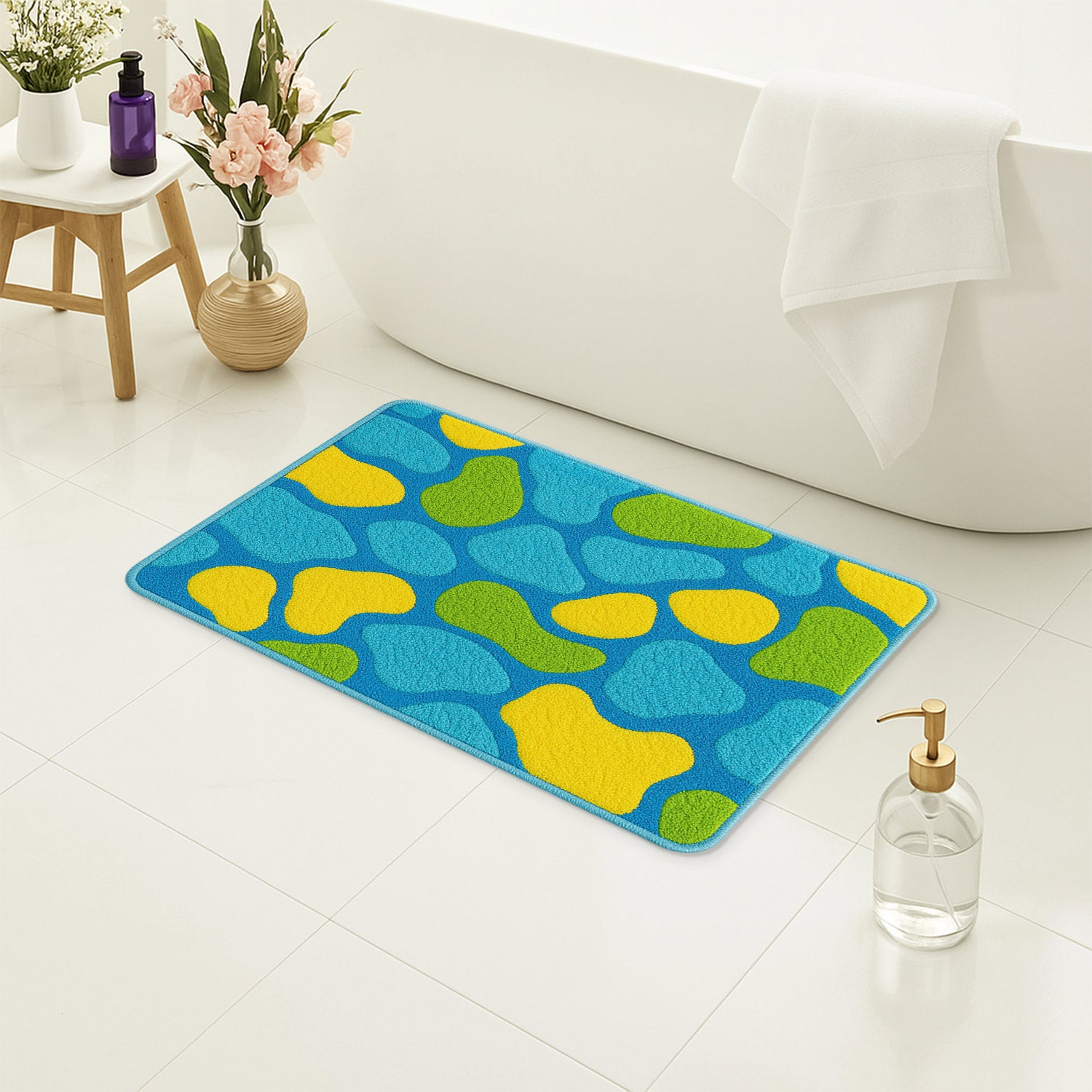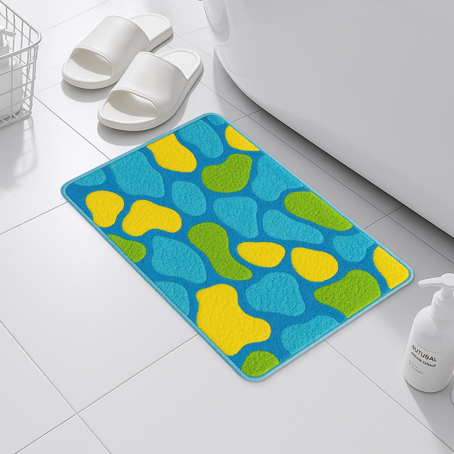 Feblilac Colorful Abstract Bath Mat – Non-Slip Bathroom Rug with Blue, Yellow & Green Modern Design, Soft and Absorbent