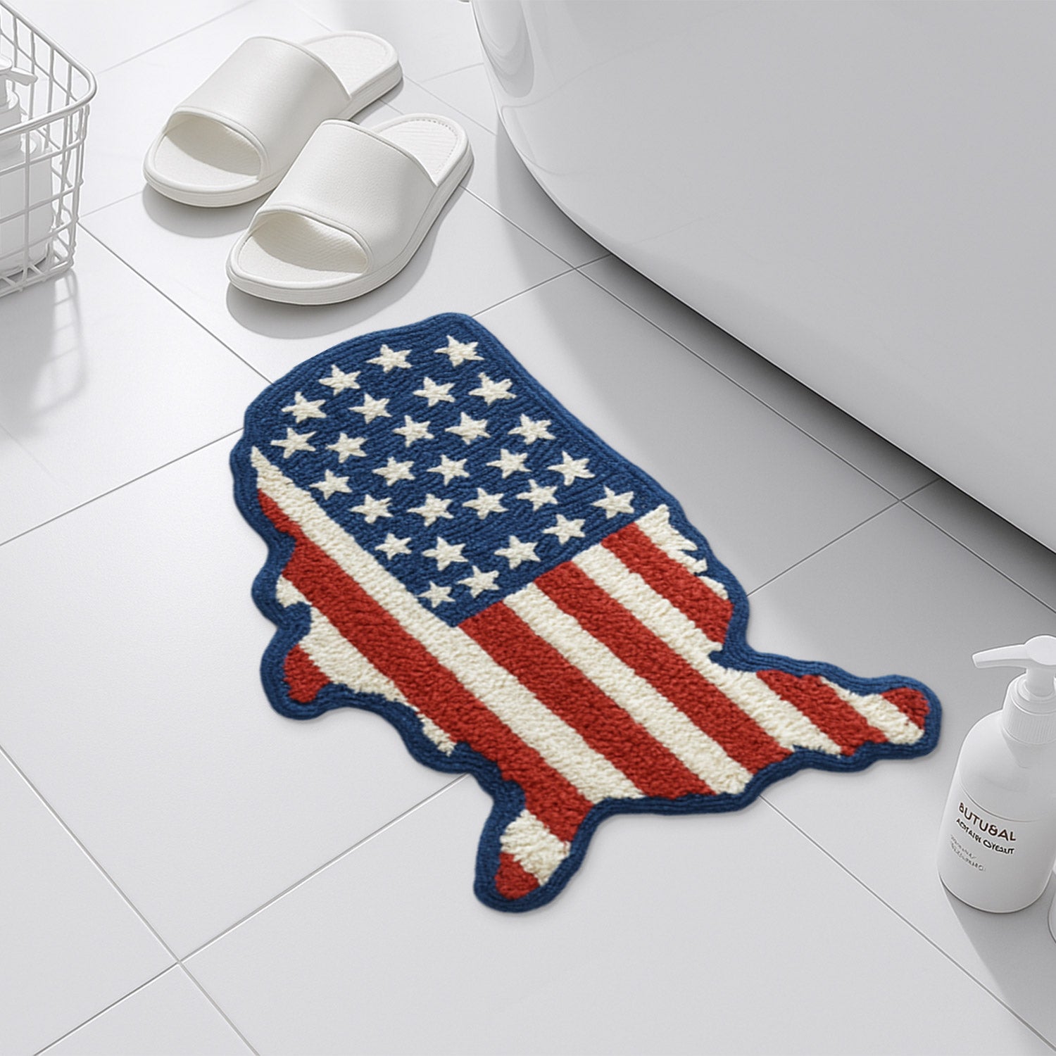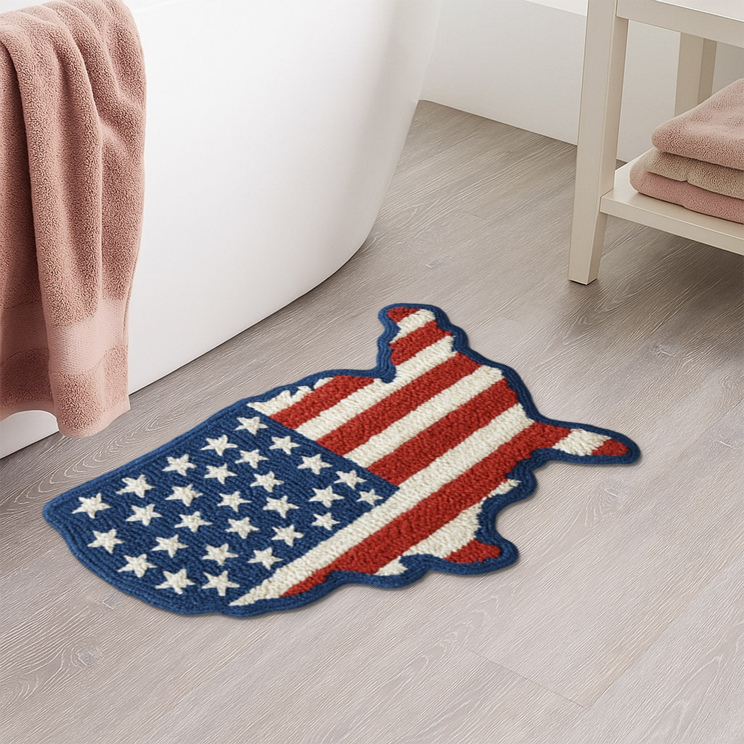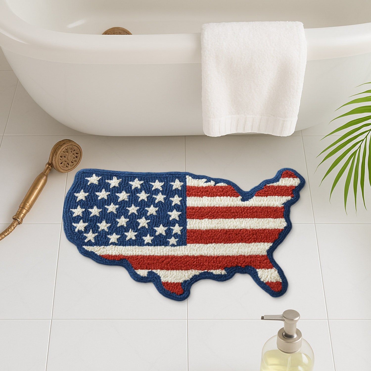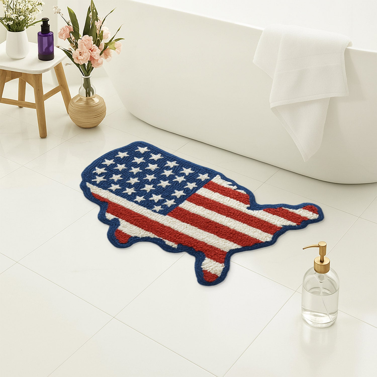 USA Map Tufted Rug – Patriotic Red White Blue Star-Spangled Bath Mat