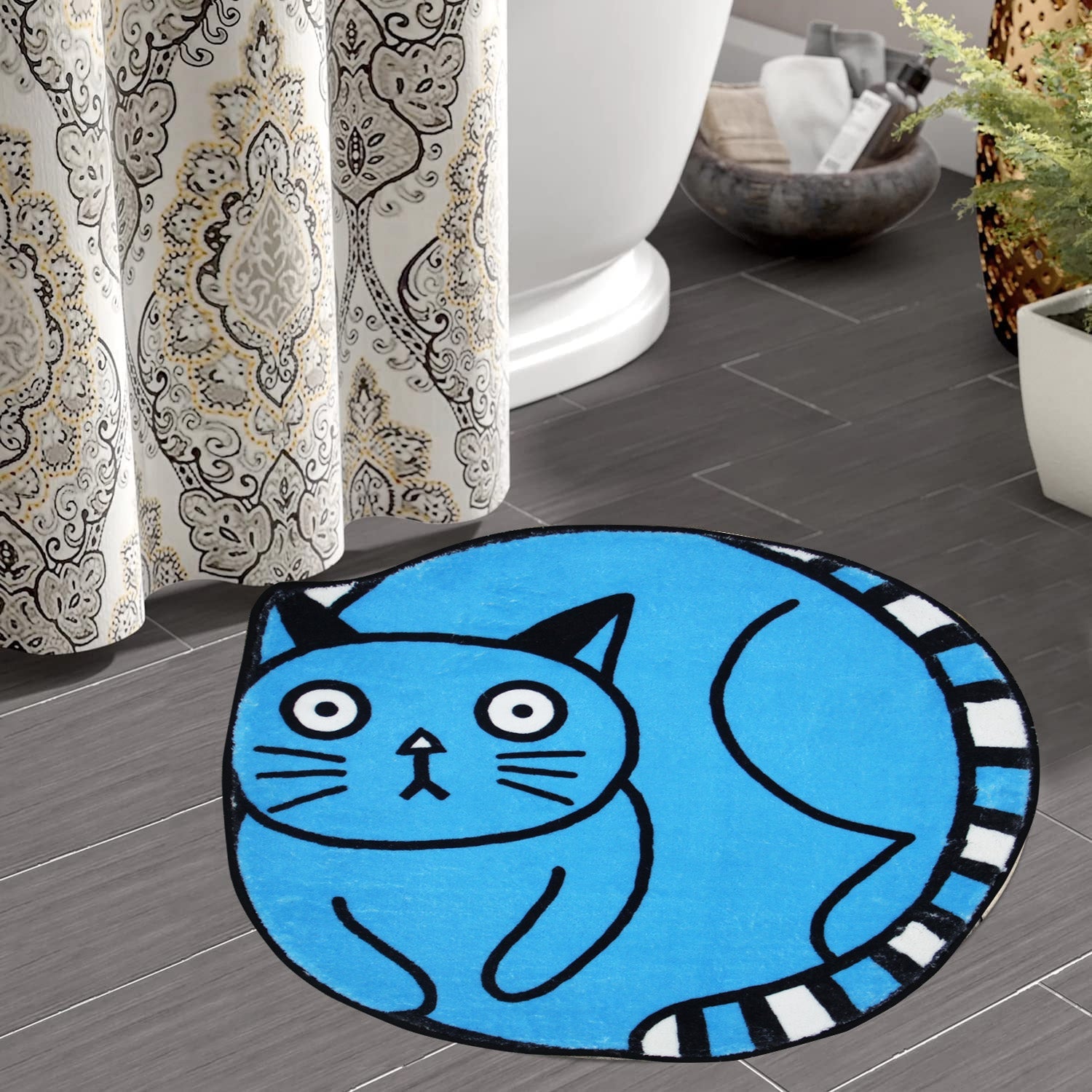 Blue Silly Cat Bath Mat - 19.6″x19.6″, or 50cm*50cm is backordered and will ship as soon as it is back in stock.