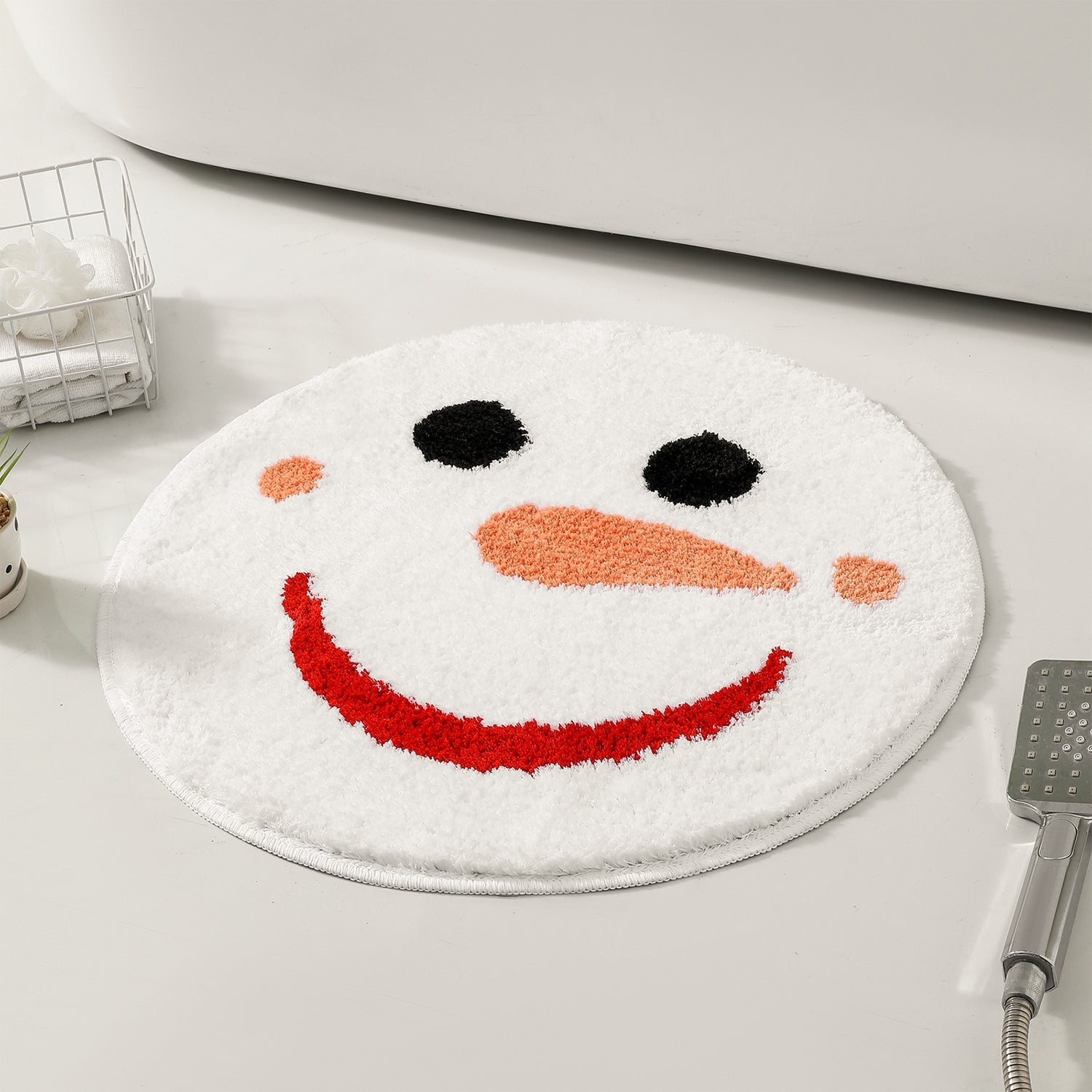 Christmas Snow Man Round Rug, Holiday Winter Bathroom Mat, 60cm / 23"