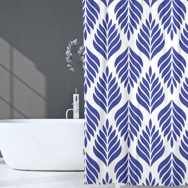 Feblilac Hot Blue Leaves Shower Curtain with Hooks, Floral Bathroom Curtains with Ring, Unique Bathroom décor, Boho Shower Curtain, Customized Bathroom Curtains, Extra Long Shower Curtain