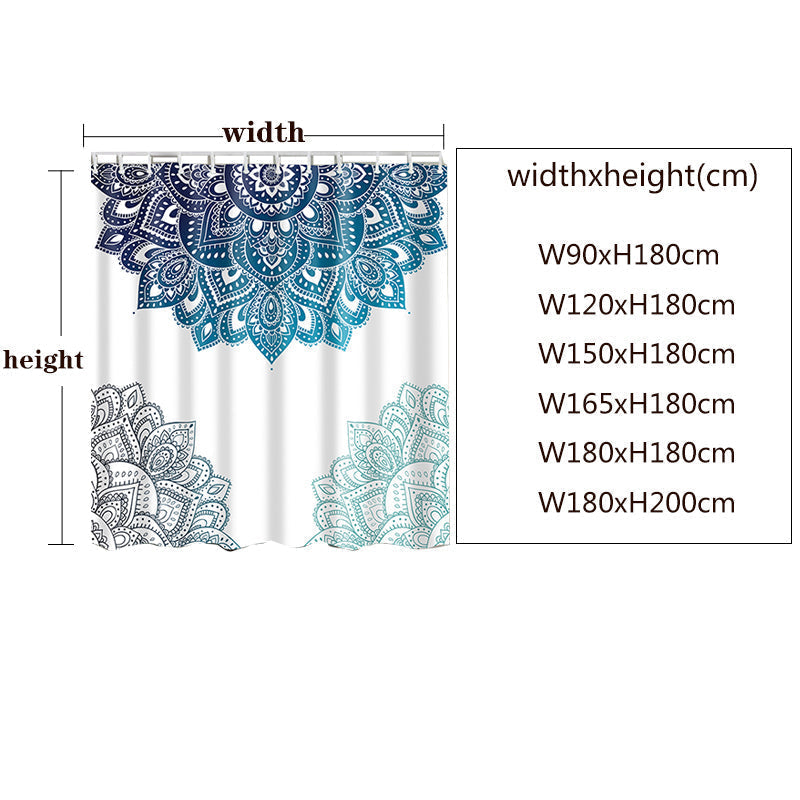 Add a fresh atmosphere to your bathroom with the Feblilac Grey and Blue Mandala Printed Flower with White Ground Shower Curtain!