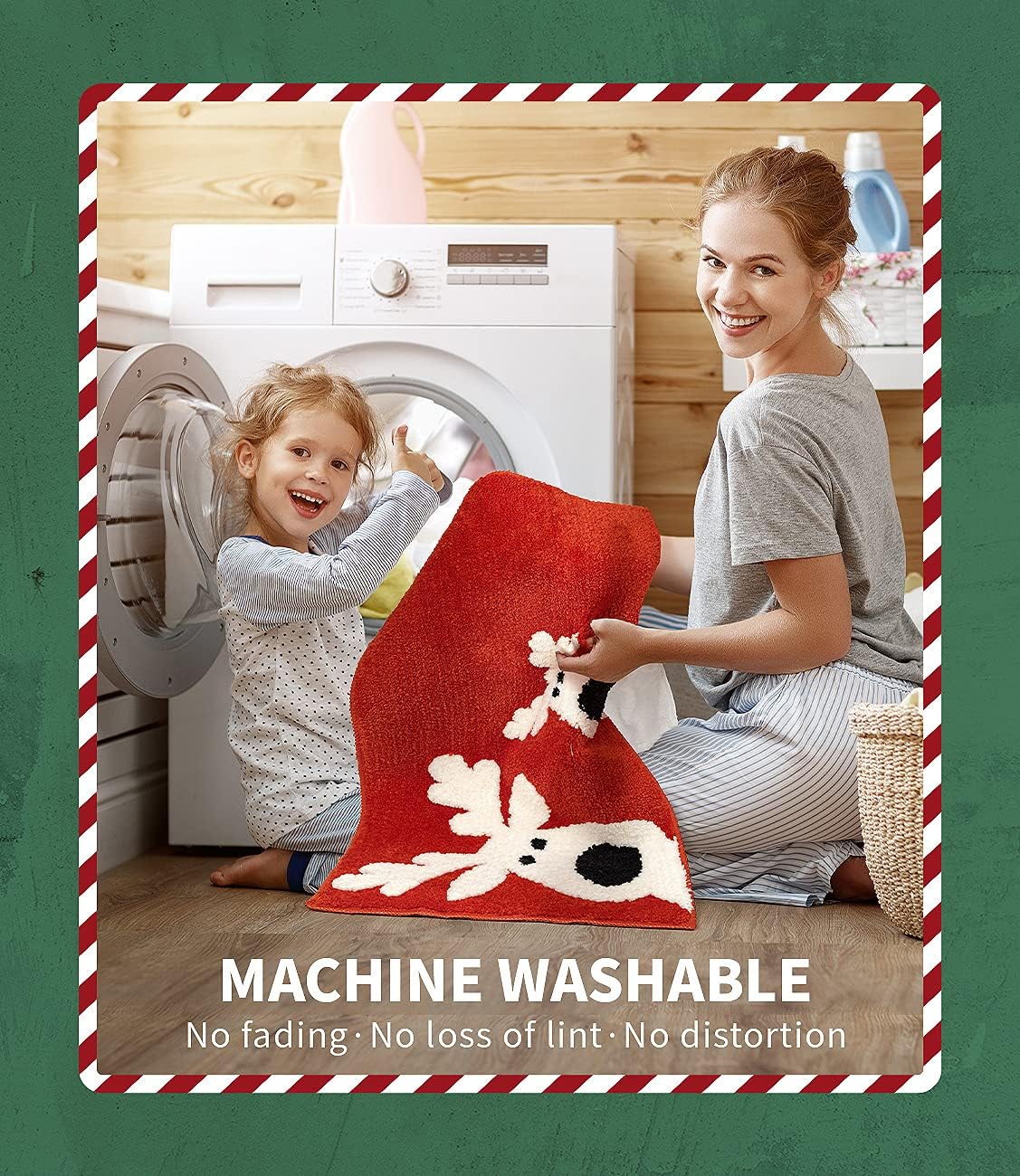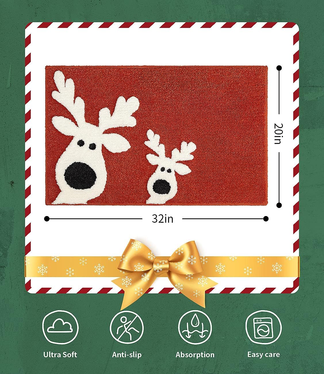 Cute Deer Bath Mat Christmas Decor, Reindeer Bathroom Decor, 20x32 inches