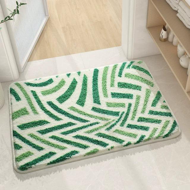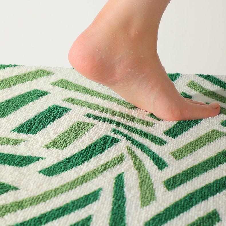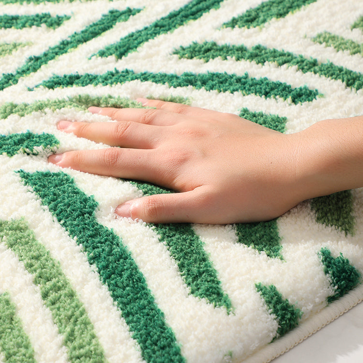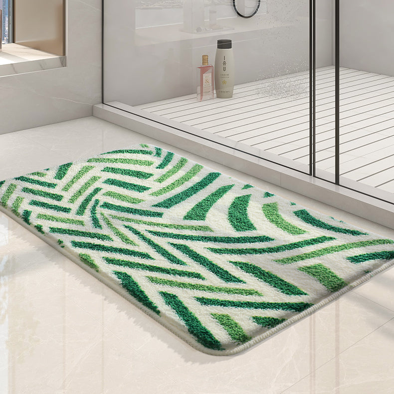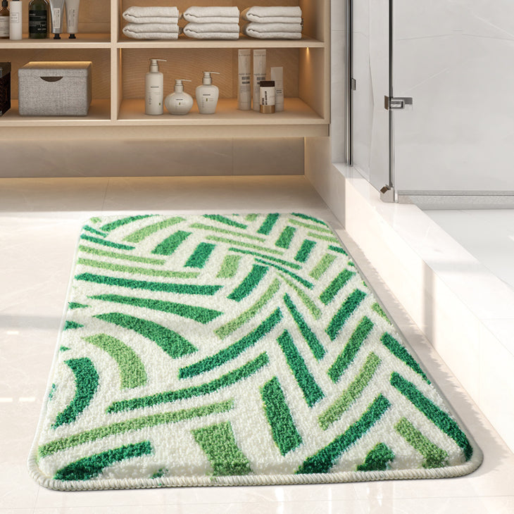 Feblilac Abstract Green Lines Bath Mat, Modern Leaves Art Rug for Bathroom