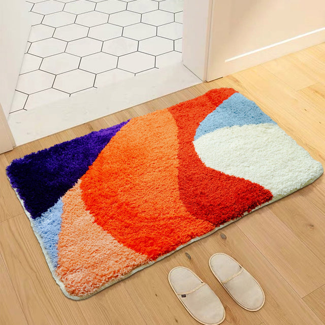 The bath mat is made of heavy-density yarn. Thick and fluffy contact surface offers exceptional comfortable feels to help soothe tired feet, and is super absorbent that helps save your floors from dripping water while you were stepping out of the bath, shower, or getting ready by the sink.