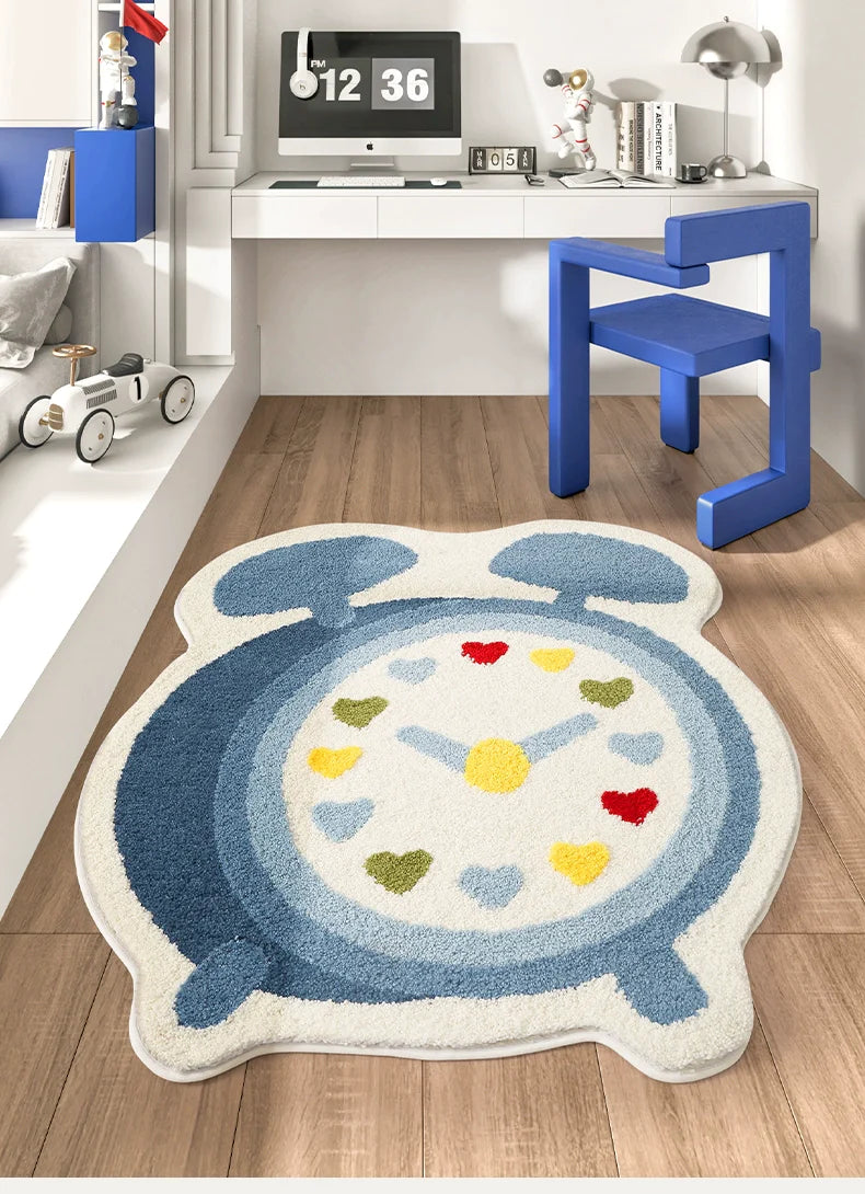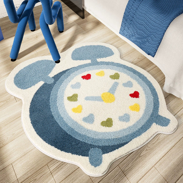 Feblilac Blue Alarm Clock Tufted Bath Mat