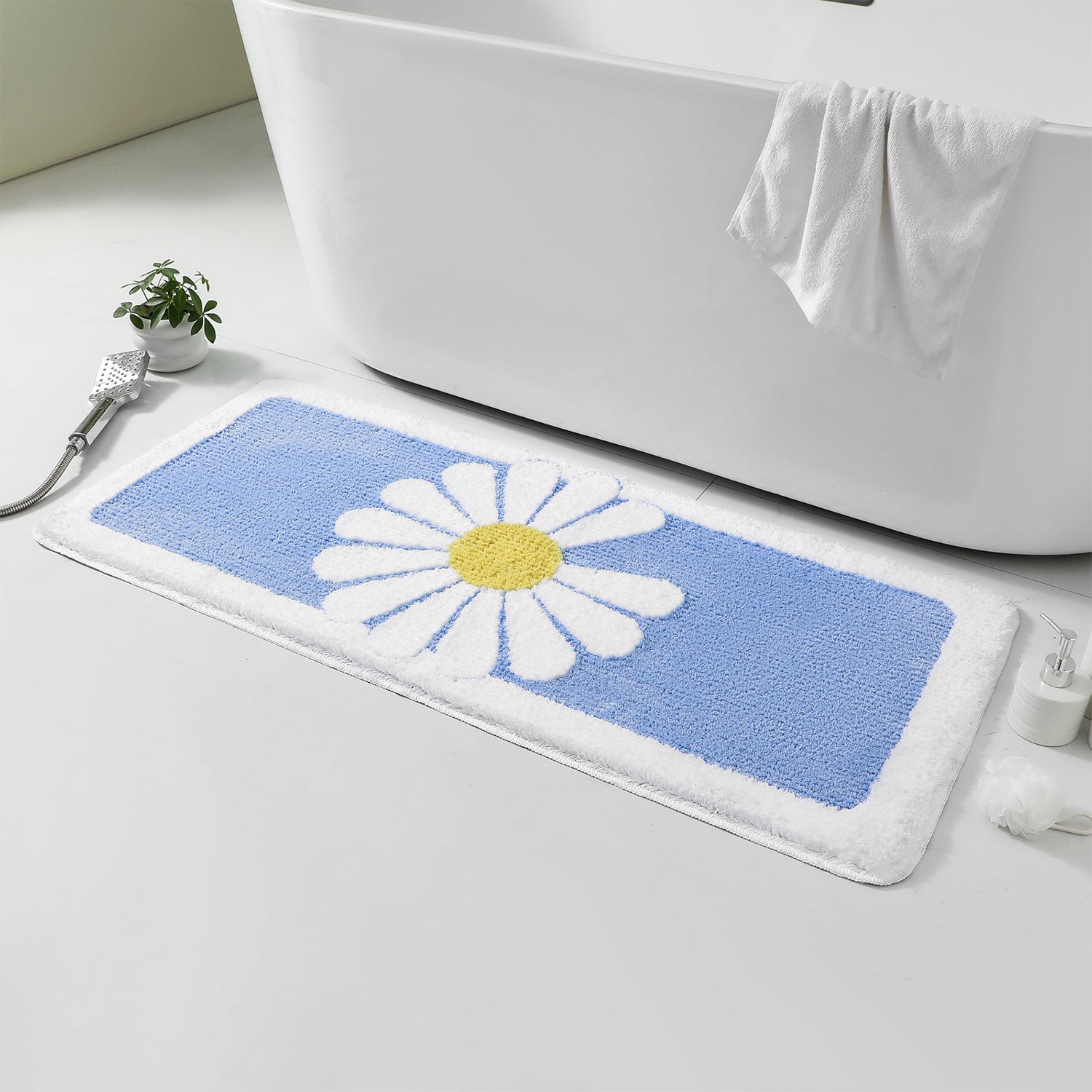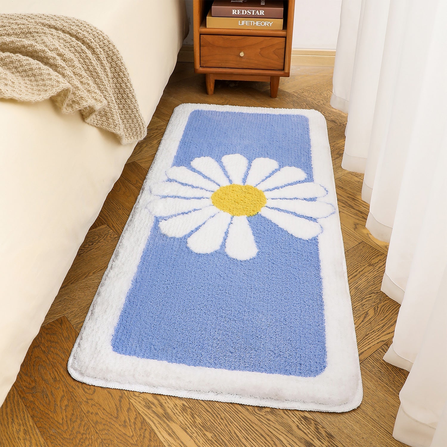 Feblilac Blue Daisy Runner Mat for Bedroom Bathroom, 50x120cm / 20"x47" - Blue is backordered and will ship as soon as it is back in stock.