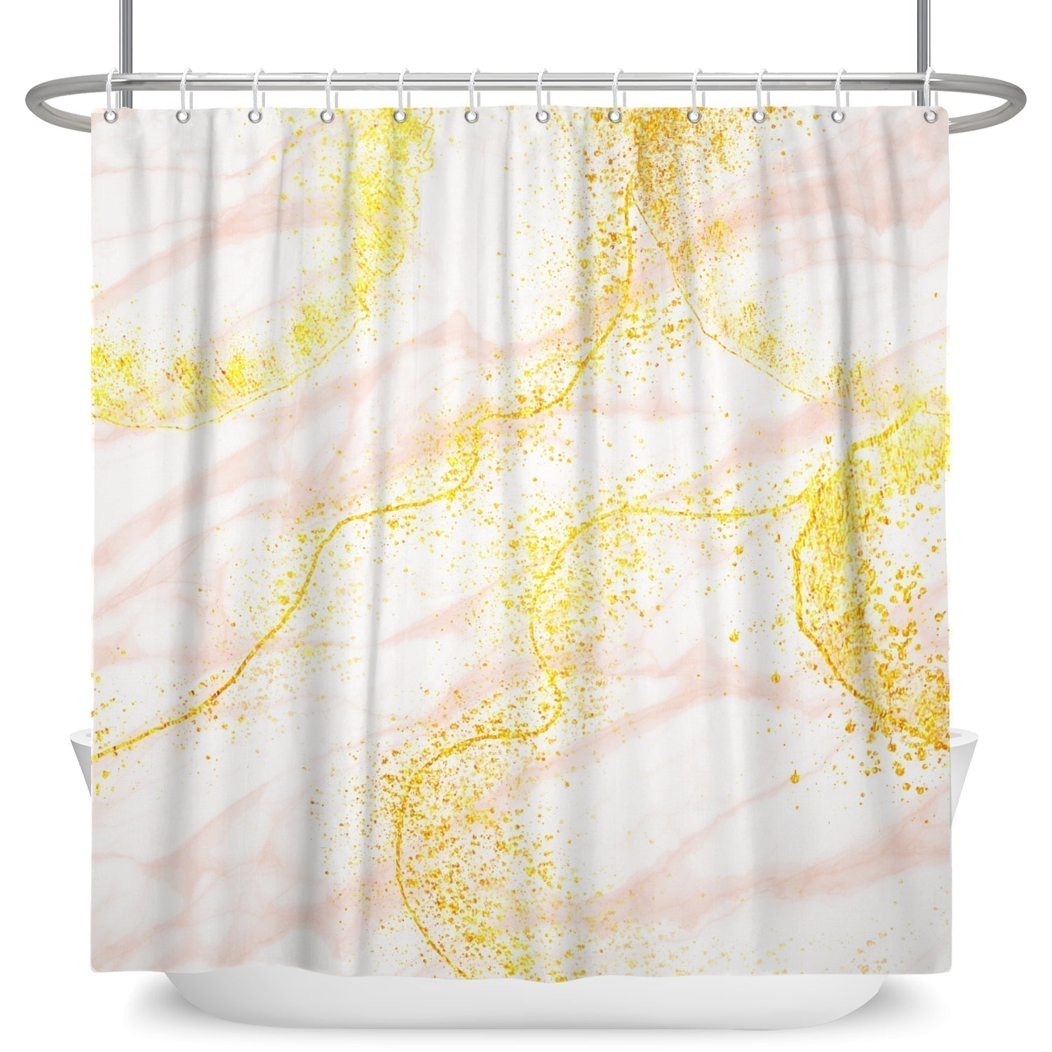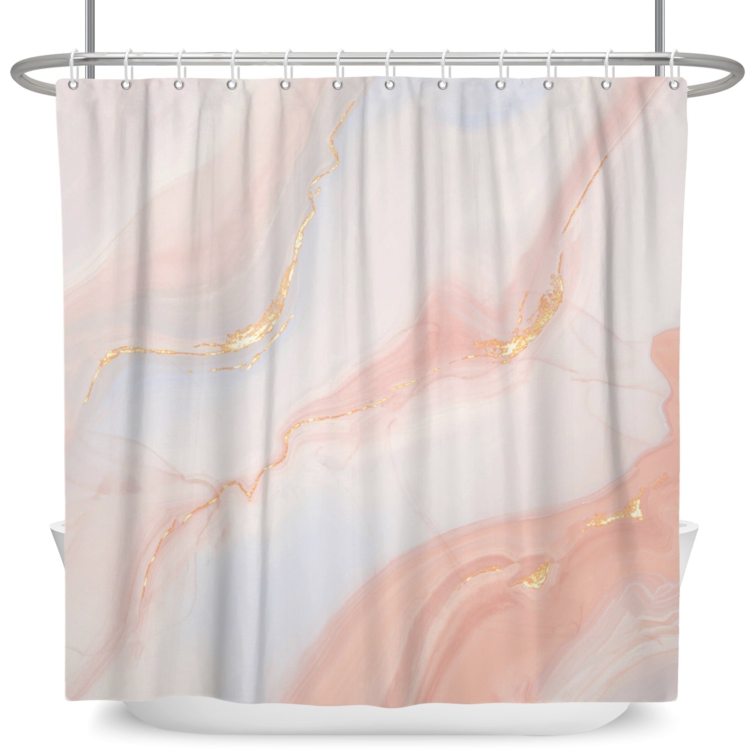 Add a fresh atmosphere to your bathroom with the Feblilac Pink White Golden Marble Pattern Texture Shower Curtains!