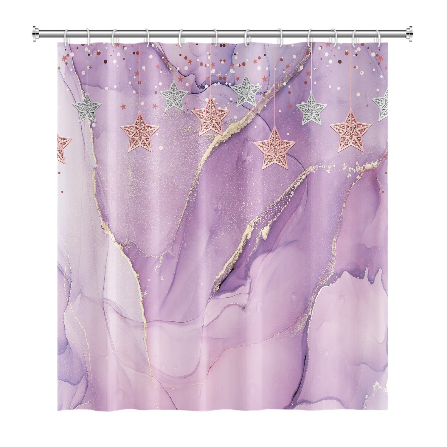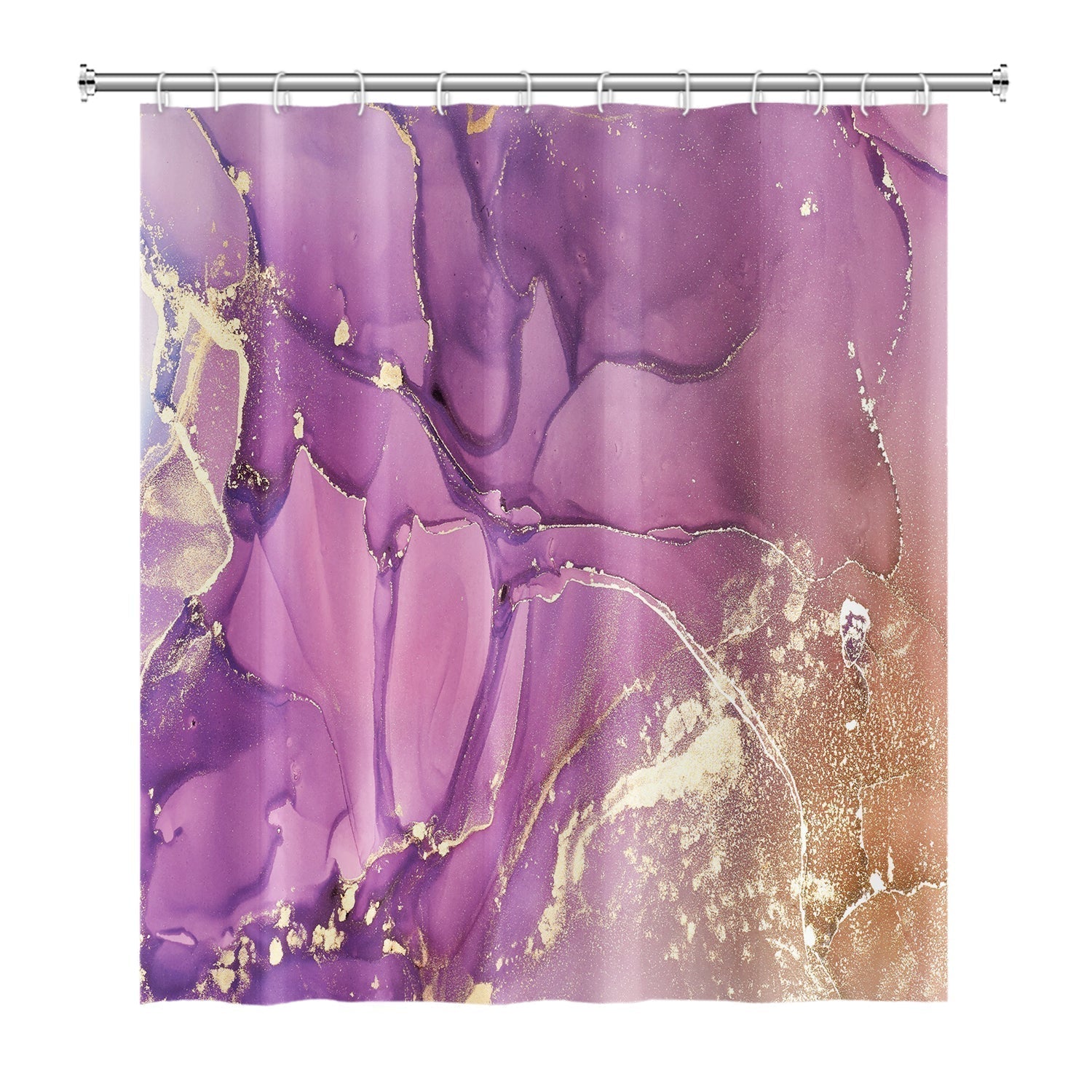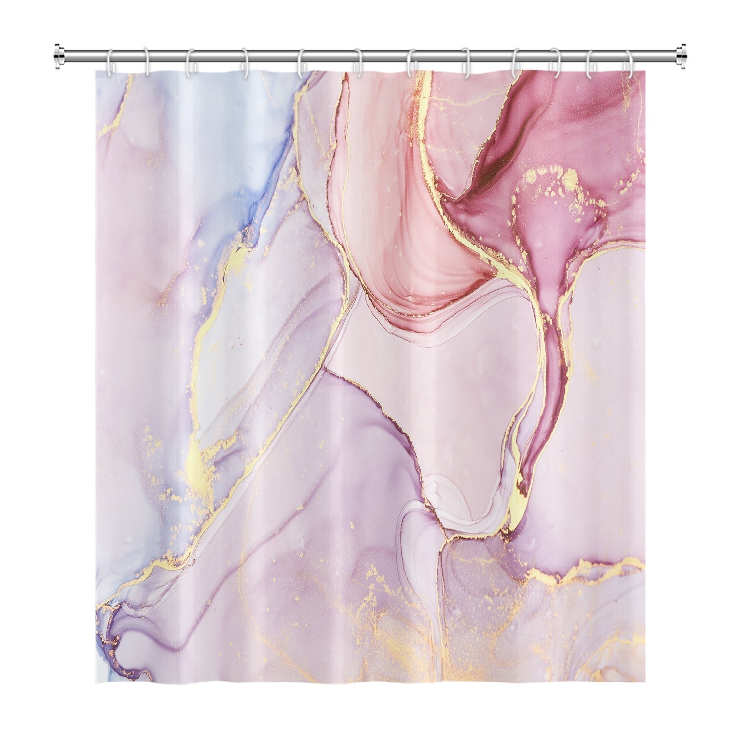 Feblilac Pink Purple Golden Marble Pattern Texture Shower Curtains with Hooks, Bathroom Curtains with Ring, Unique Bathroom décor, Boho Shower Curtain, Customized Bathroom Curtains, Extra Long Shower Curtain, Abstract Blue and Purple Gradient Bathroom