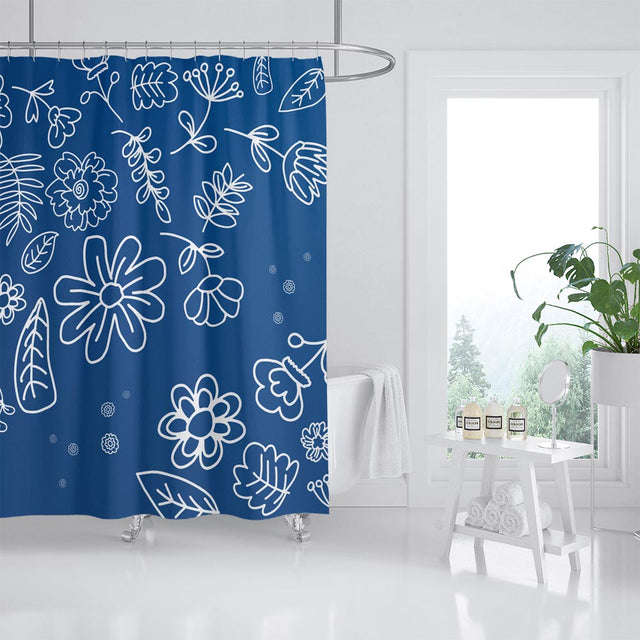Feblilac Blue Little Flowers Shower Curtain with Hooks, Bathroom Curtains with Ring, Unique Bathroom décor, Boho Shower Curtain, Customized Bathroom Curtains, Extra Long Shower Curtain