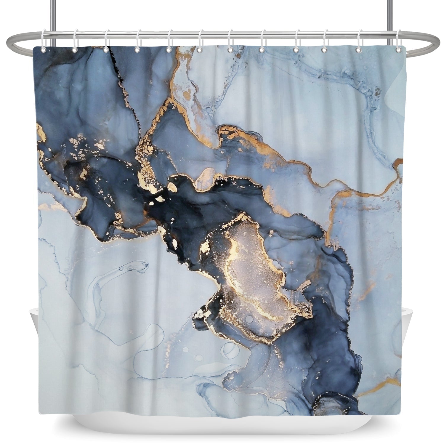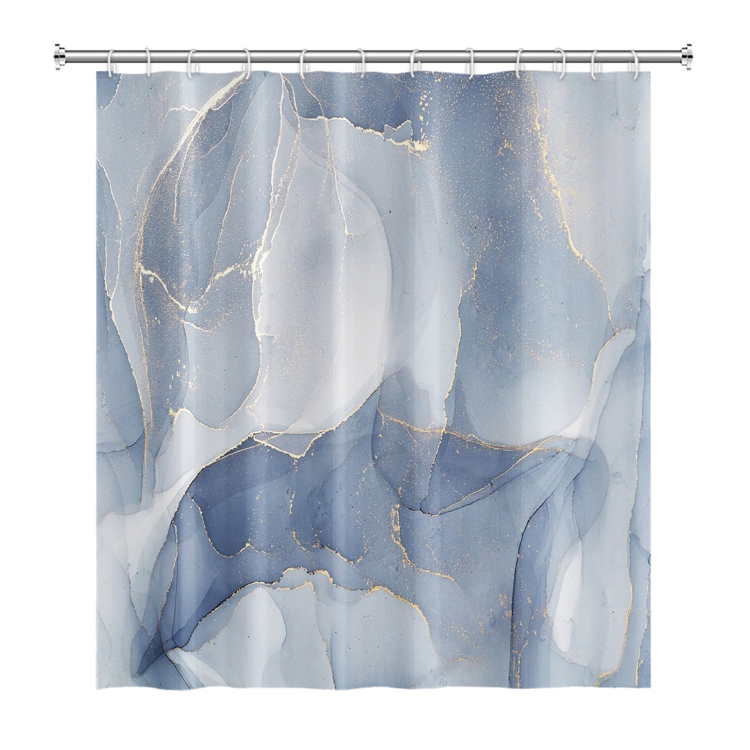 Add a fresh atmosphere to your bathroom with the Feblilac Blue Grey Golden Marble Pattern Texture Shower Curtains!