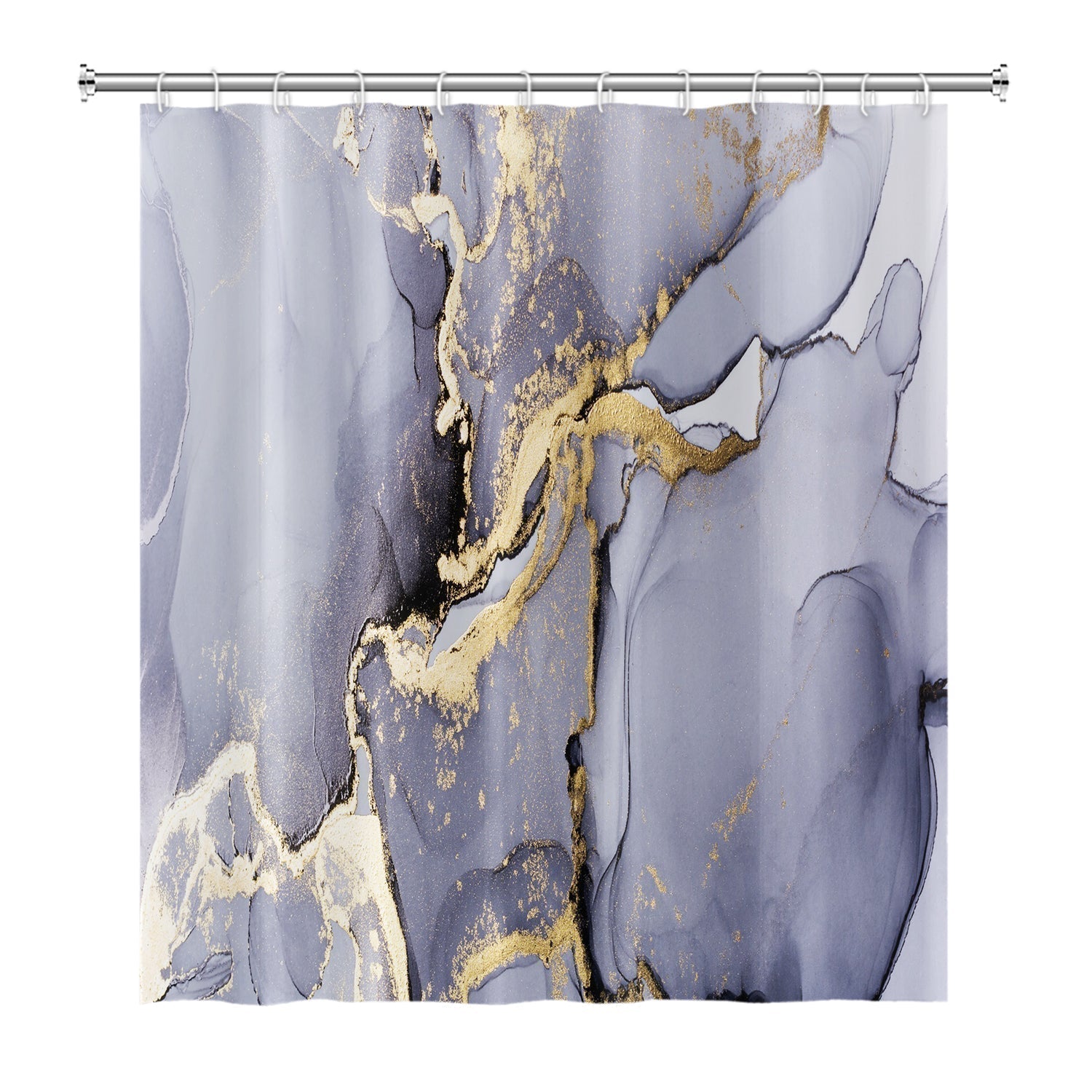 Feblilac Blue Grey Golden Marble Pattern Texture Shower Curtains with Hooks, Bathroom Curtains with Ring, Unique Bathroom décor, Boho Shower Curtain, Customized Bathroom Curtains, Extra Long Shower Curtain, Abstract Blue and Purple Gradient Bathroom - W120xH180cm / A is backordered and will ship as soon as it is back in stock.