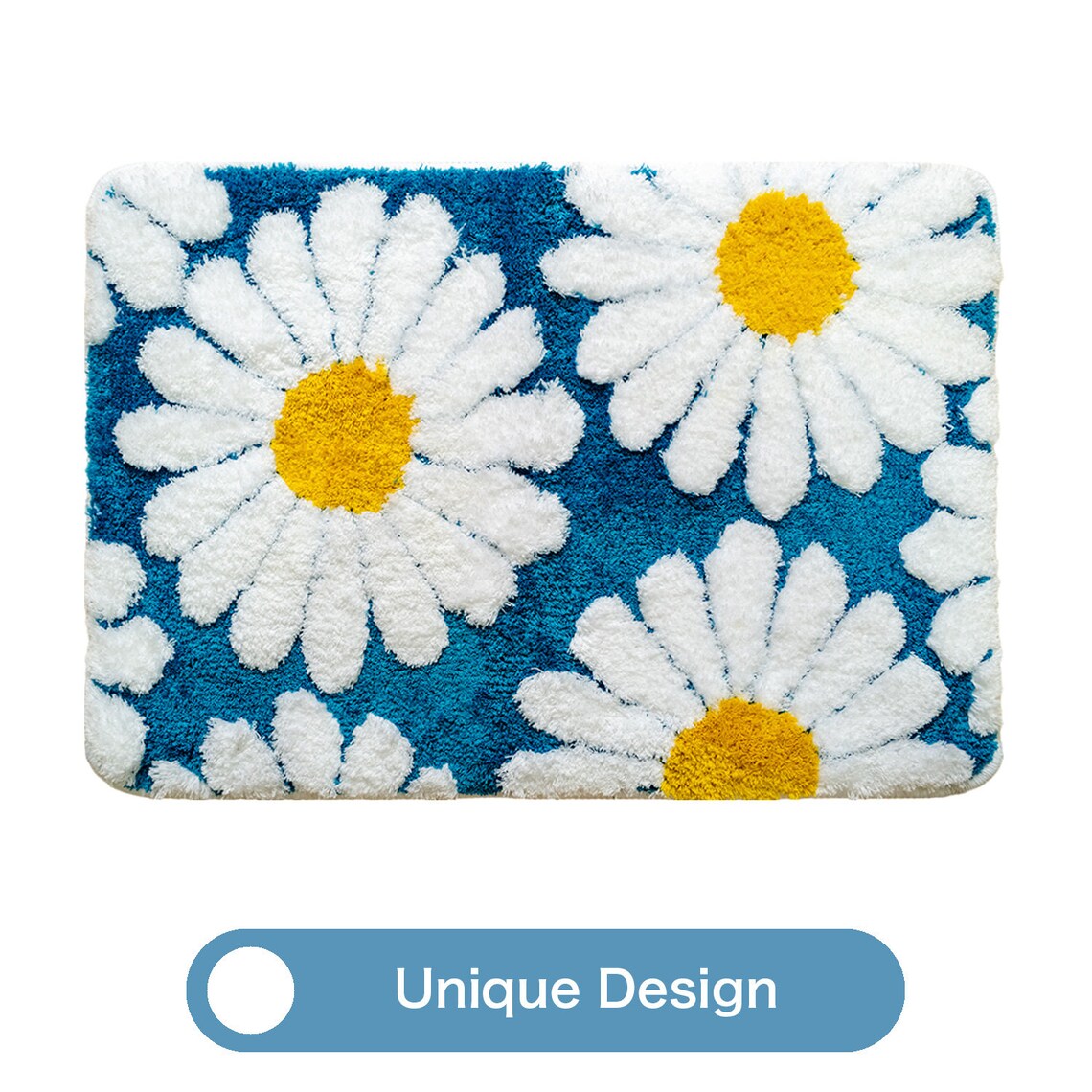 Feblilac Bright Blue Daisy Tufted Bath Mat - 19.6"x31.5" or 50x80cm is backordered and will ship as soon as it is back in stock.