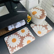 Feblilac Brown Daisy Bath Mat Set, Flower Floral Bathroom Rug Set, Toilet Cover Mat