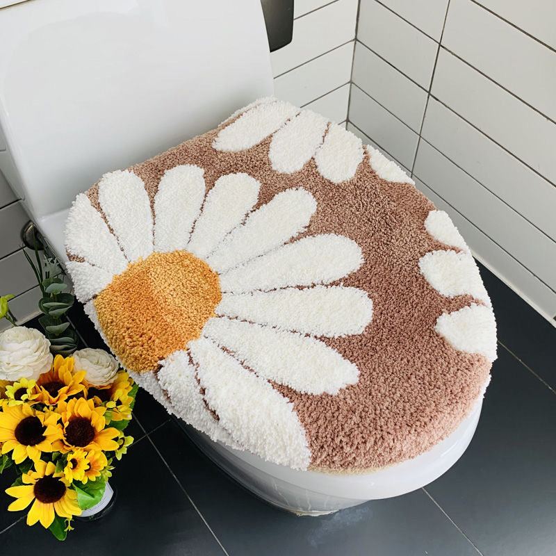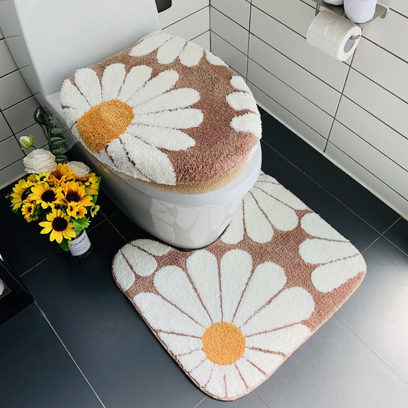 Feblilac Brown Daisy Bath Mat Set, Flower Floral Bathroom Rug Set, Toilet Cover Mat - Set of 3 is backordered and will ship as soon as it is back in stock.
