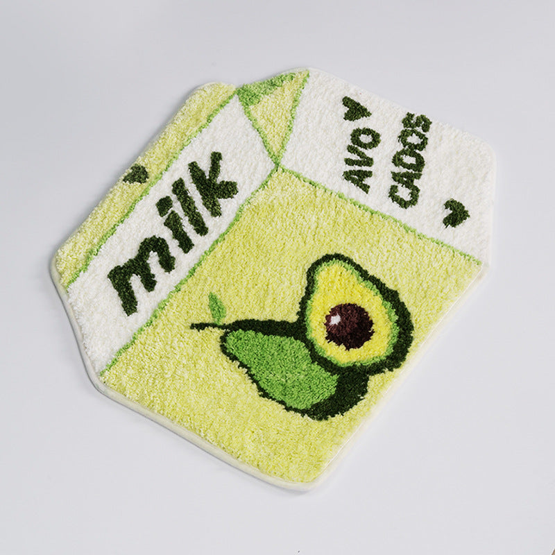 Feblilac Cartoon Fruit Bath Mat, Green Avocado Milk Bathroom Rug, Soft Flush Non-Slip Water Absorbent Mat