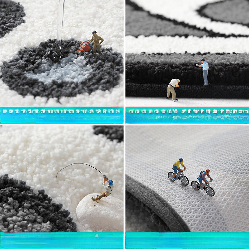 The bath mat is made of heavy-density yarn. Thick and fluffy contact surface offers exceptional comfortable feels to help soothe tired feet, and is super absorbent that helps save your floors from dripping water while you were stepping out of the bath, shower, or getting ready by the sink.