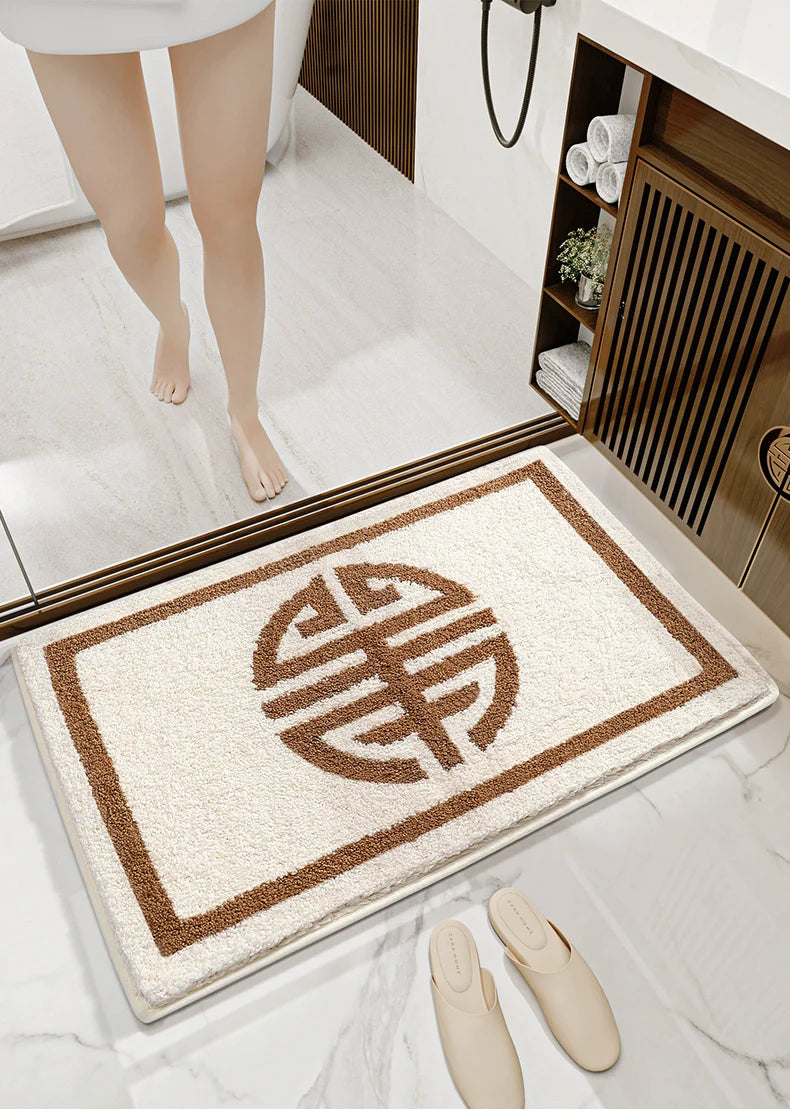 Feblilac Chinese Brown Pattern Tufted Bath Mat