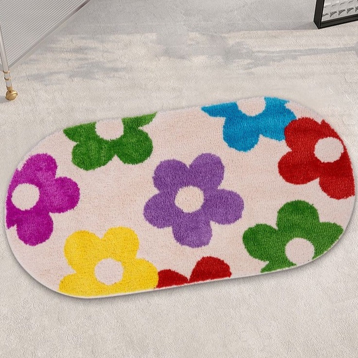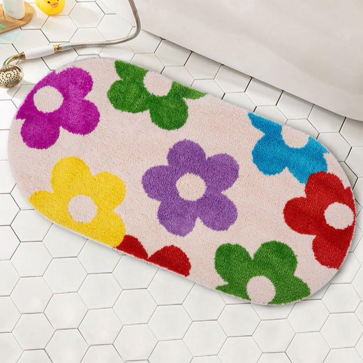 Feblilac Cute Floral Bathroom Mat, Flower Long Runner Bath Rug