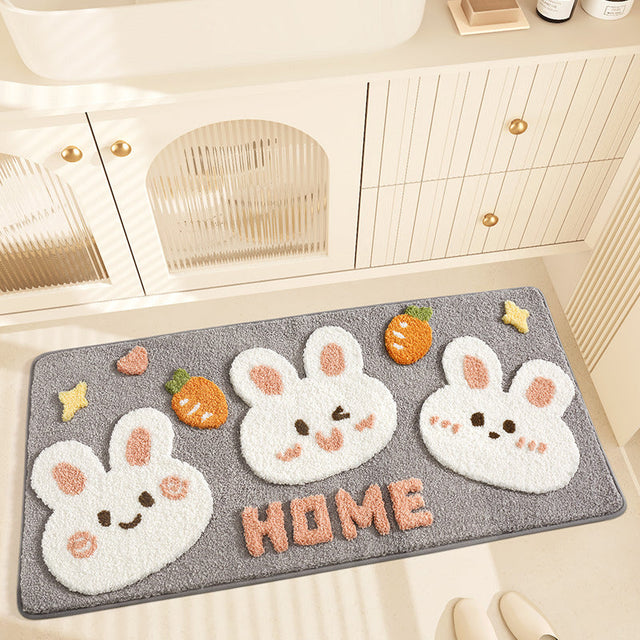 Feblilac Cute Rabbit and Carrot Tufted Bath Mat