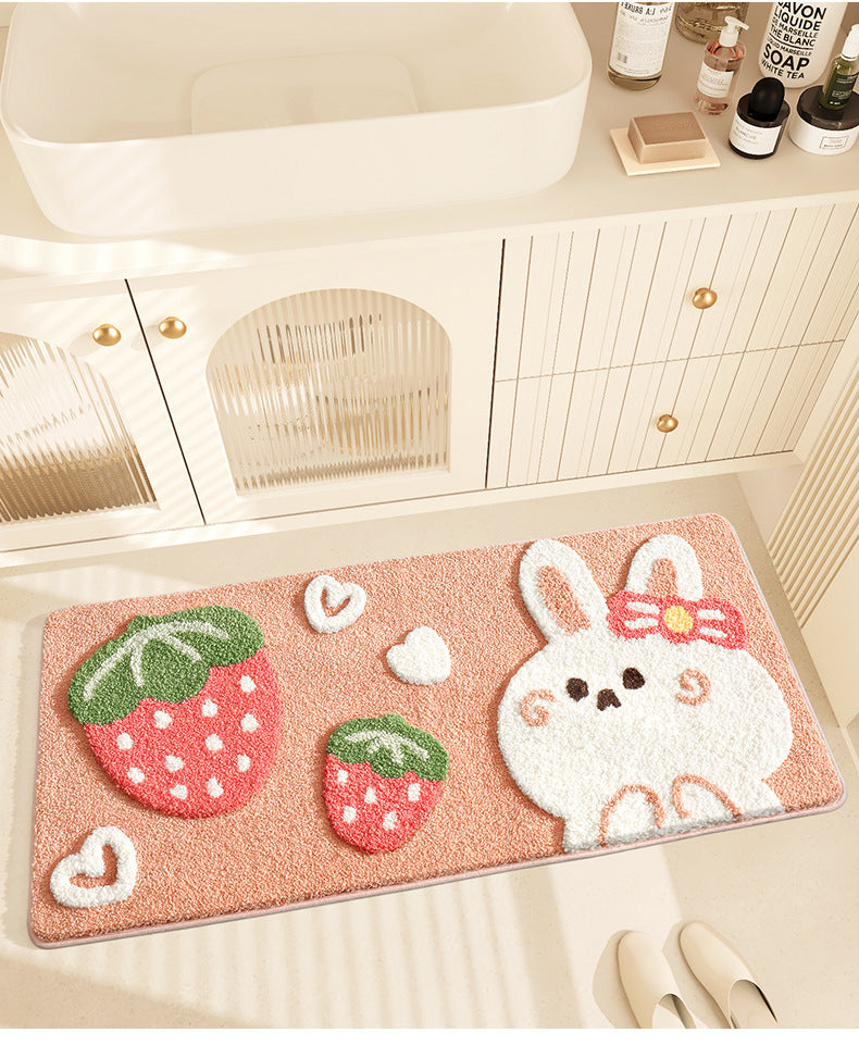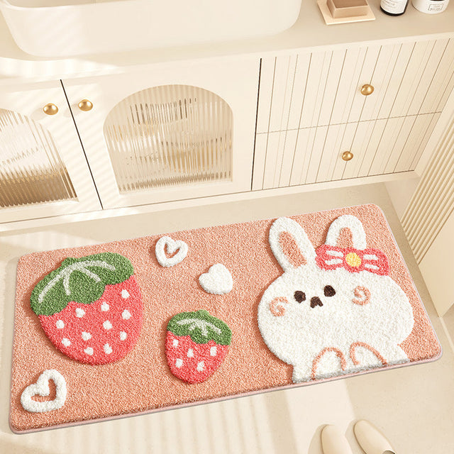 Feblilac Cute rabbit and strawberry Tufted Bath Mat