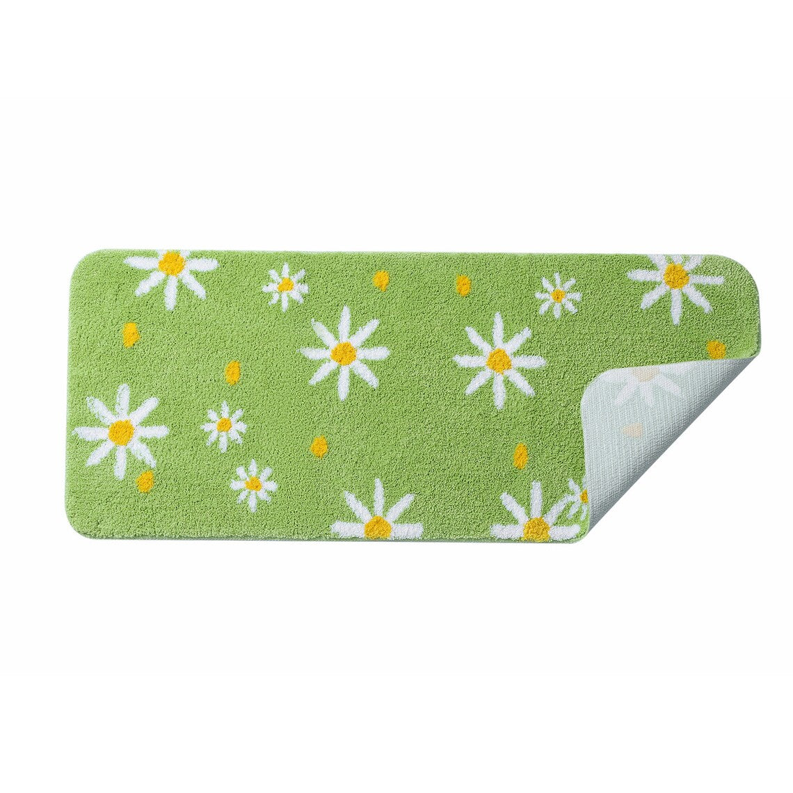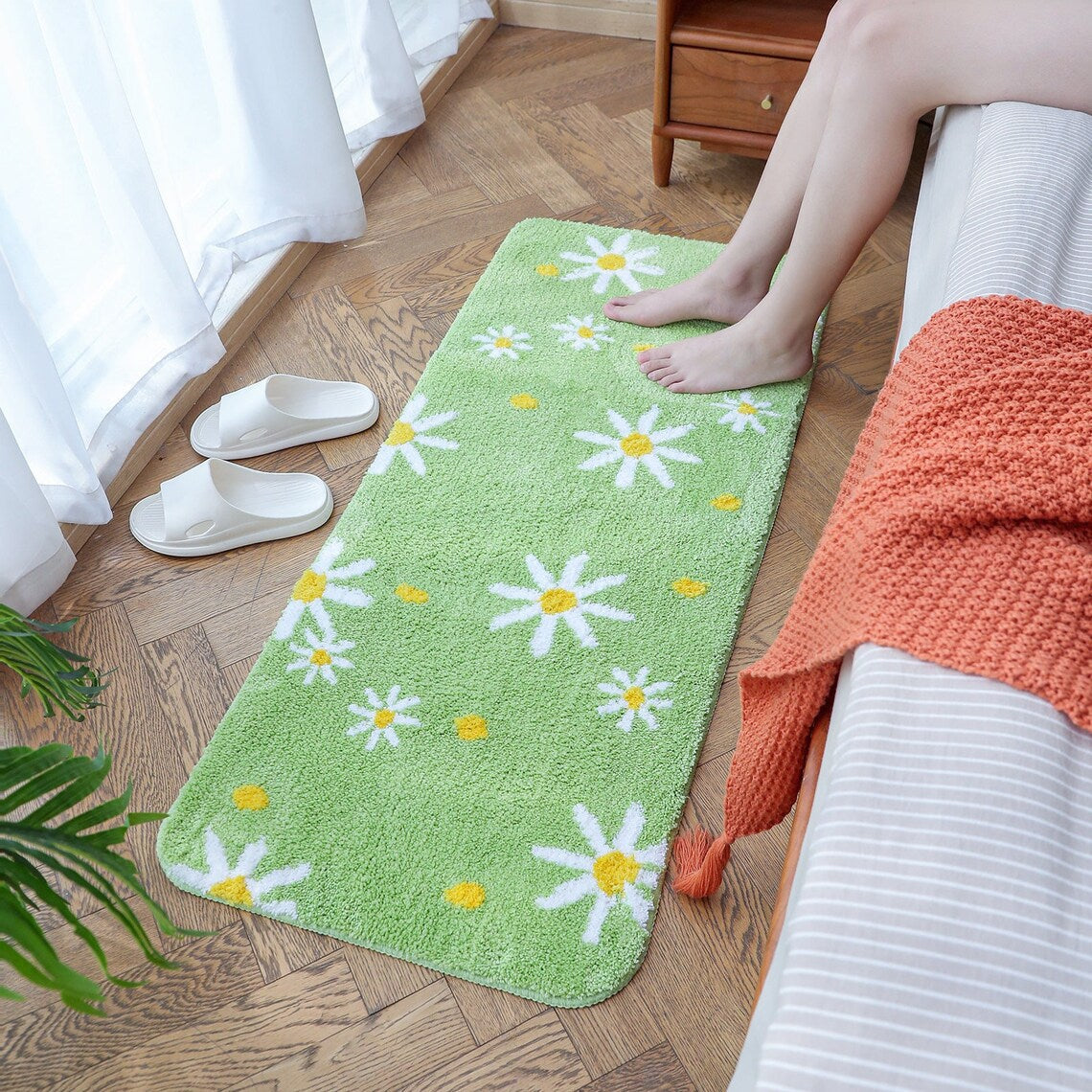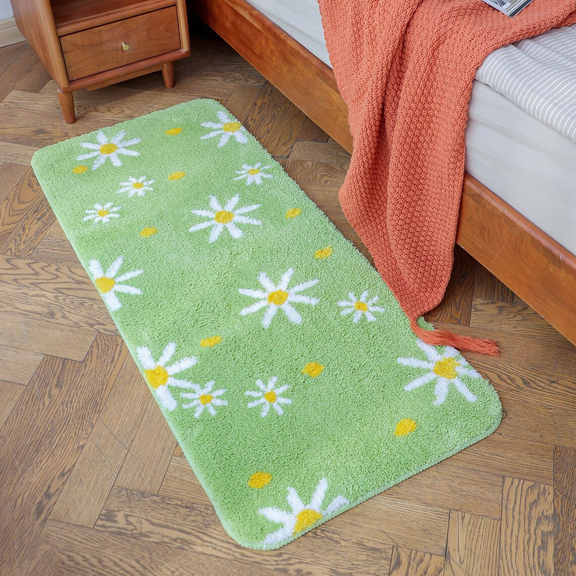 Feblilac Daisy Flowers Bedroom Runner, Floral Green Soft Indoor Area Rug, Water Absorbent Non-Slip Microfiber Mat for Hallway Laundry Room Rug