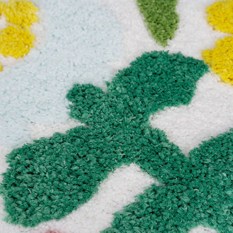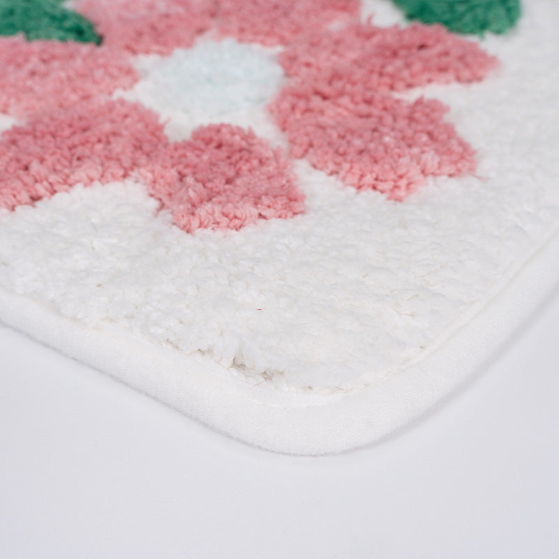 Feblilac Flowers Bath Mat, Pink Yellow Bathroom Rug, Soft Flush Non-Slip Water Absorbent Mat