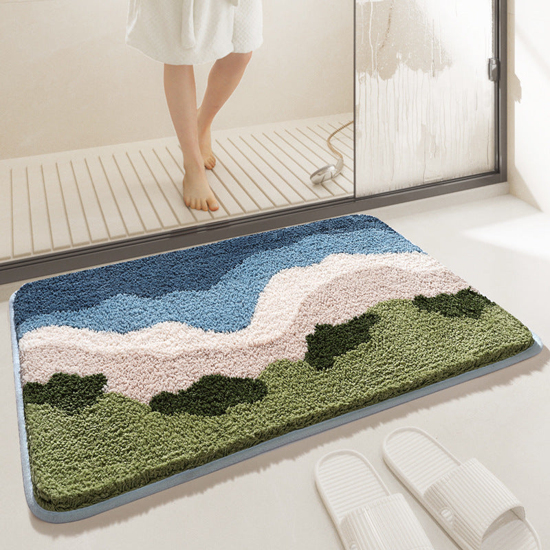 Feblilac Grass White Clouds Sky Bath Mat Rug