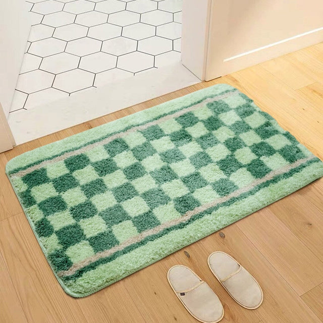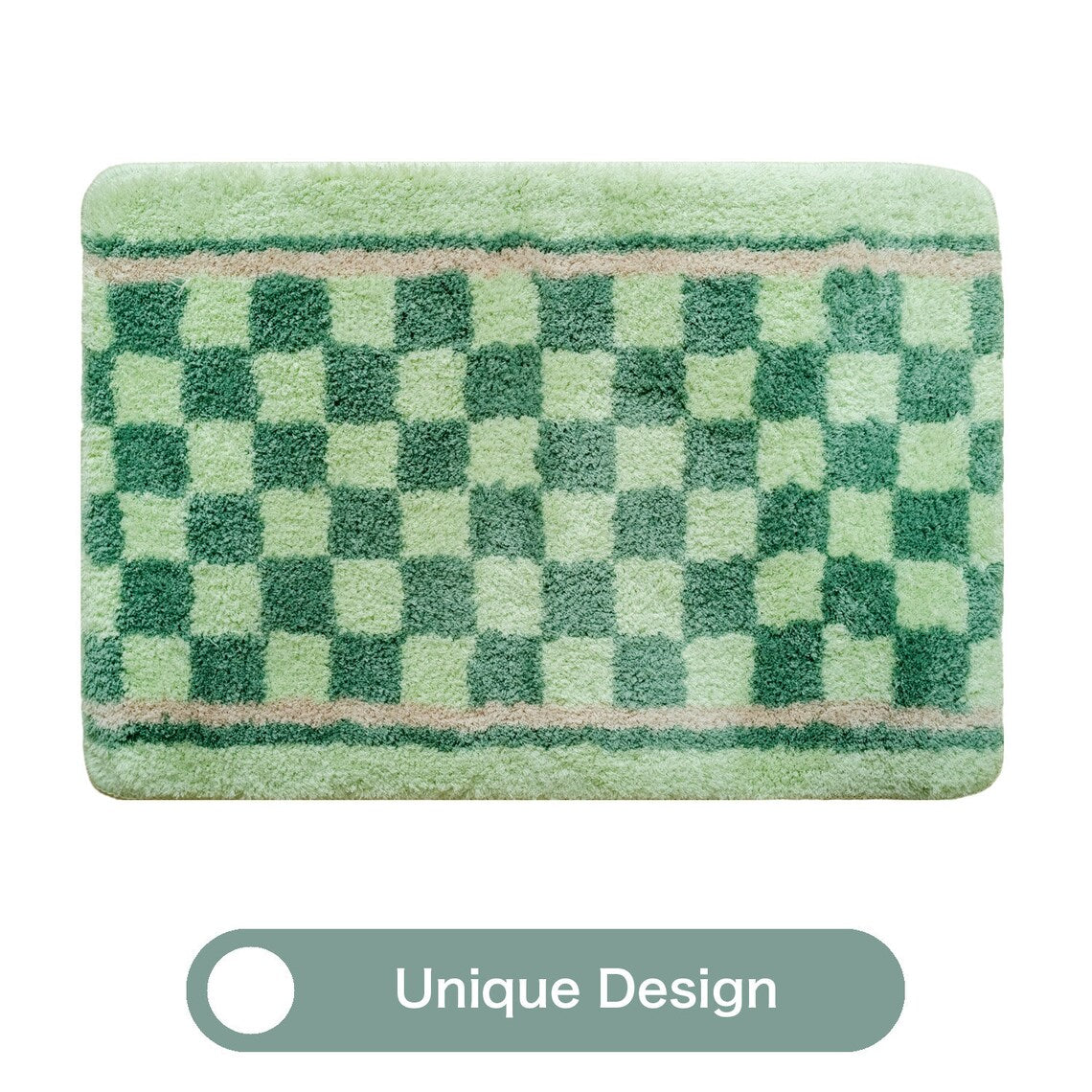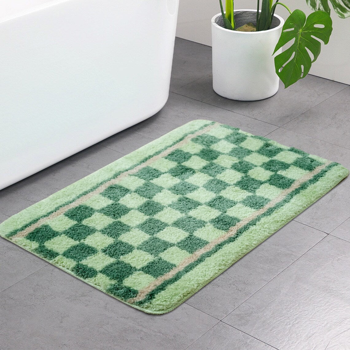 Feblilac Green Checkerboard Pattern Tufted Bath Mat