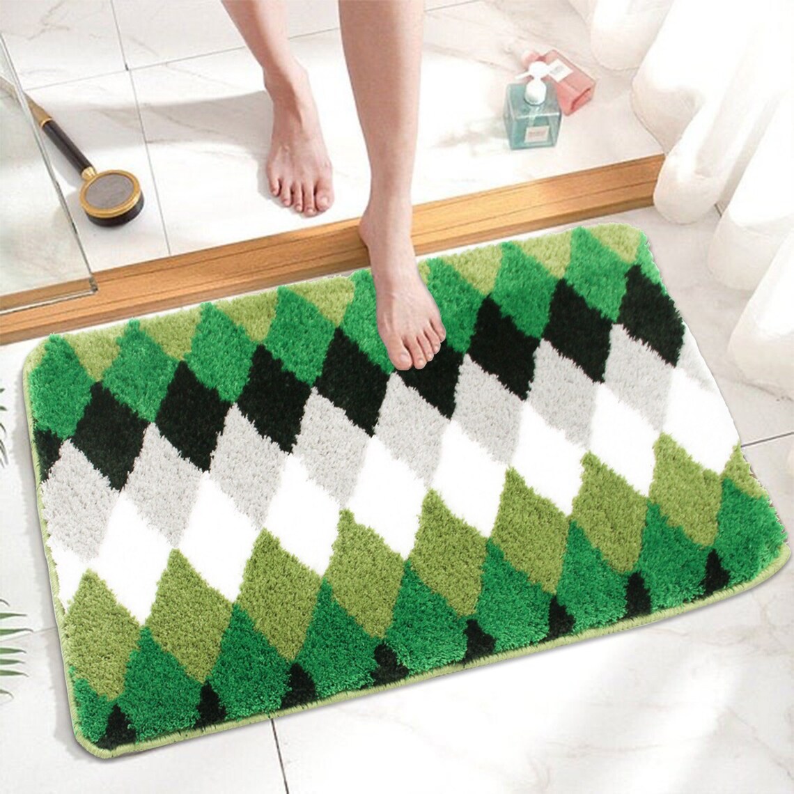 Feblilac Green Diamond Pattern Tufted Bath Mat - 15″x23″ or 40x60 cm is backordered and will ship as soon as it is back in stock.