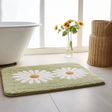 Feblilac Green White Daisy Flower Tufted Bath Mat