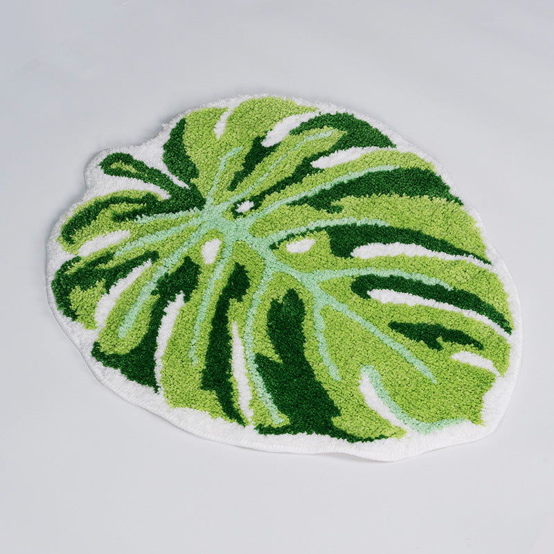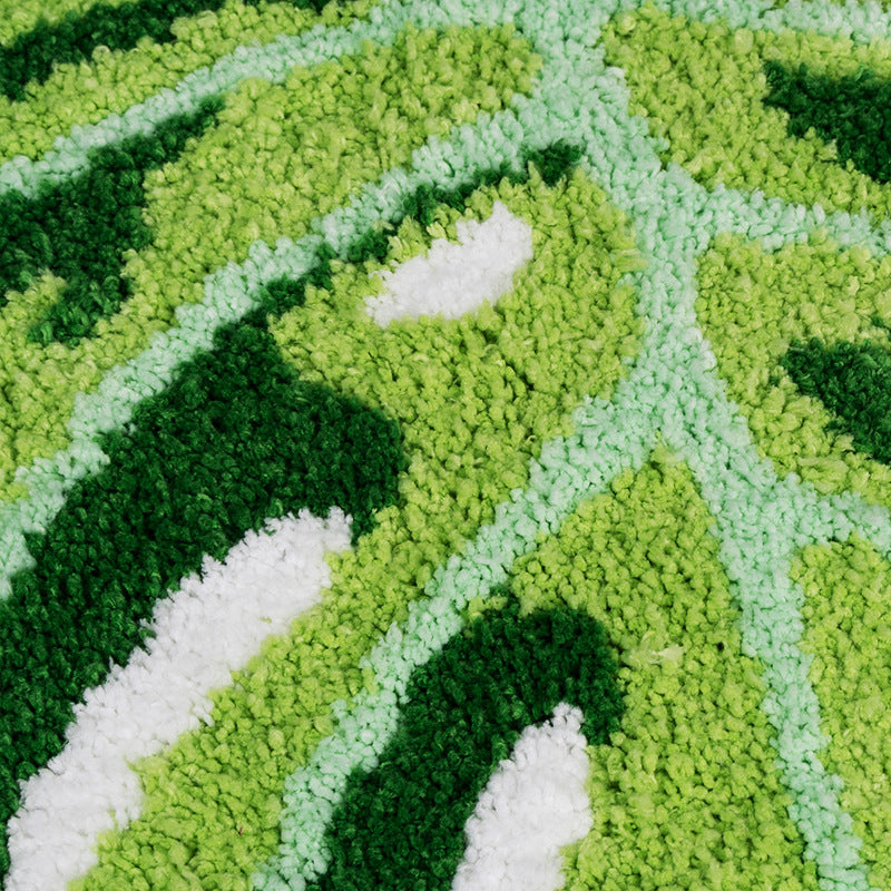 Feblilac Green Leaf Bath Mat, Monstera Bathroom Rug, Soft Flush Non-Slip Water Absorbent Mat