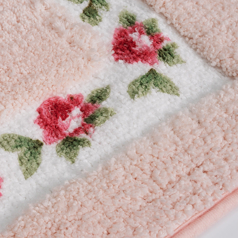 Feblilac Pink Rose Flower Bath Mat, Lovely Floral Garden Bathroom Rug, Soft Flush Non-Slip Water Absorbent Mat for Bath Tub Shower Room