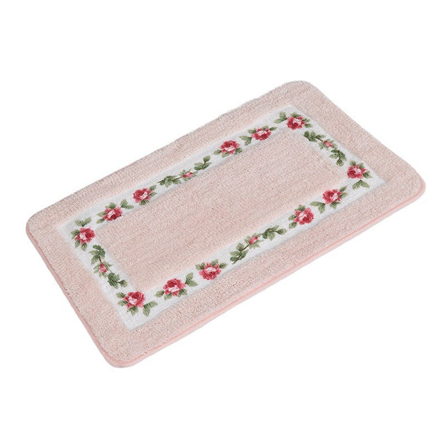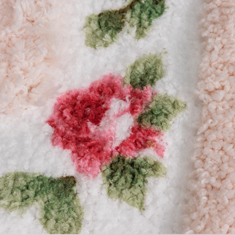 Feblilac Pink Rose Flower Bath Mat, Lovely Floral Garden Bathroom Rug, Soft Flush Non-Slip Water Absorbent Mat for Bath Tub Shower Room