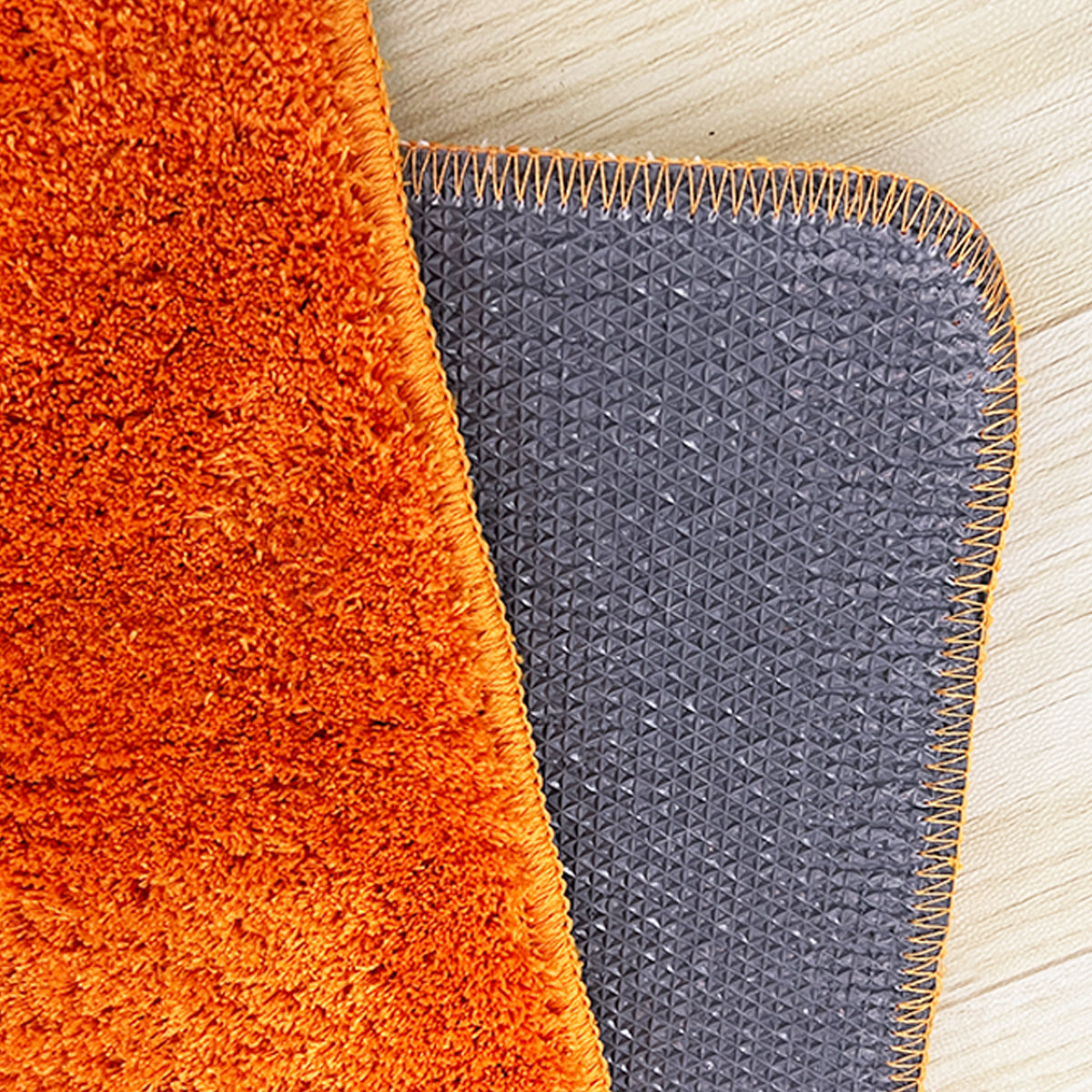 The bath mat is made of heavy-density yarn. Thick and fluffy contact surface offers exceptional comfortable feels to help soothe tired feet, and is super absorbent that helps save your floors from dripping water while you were stepping out of the bath, shower, or getting ready by the sink.