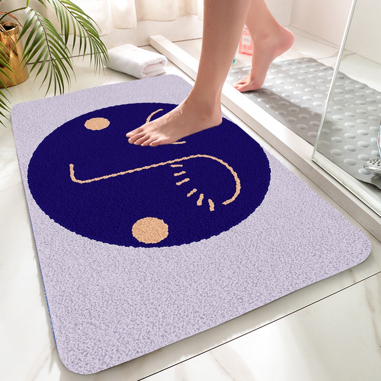 The bath mat is made of heavy-density yarn. Thick and fluffy contact surface offers exceptional comfortable feels to help soothe tired feet, and is super absorbent that helps save your floors from dripping water while you were stepping out of the bath, shower, or getting ready by the sink.