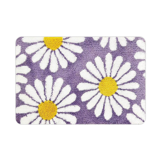 Feblilac Purple Daisy Flower Tufted Bath Mat