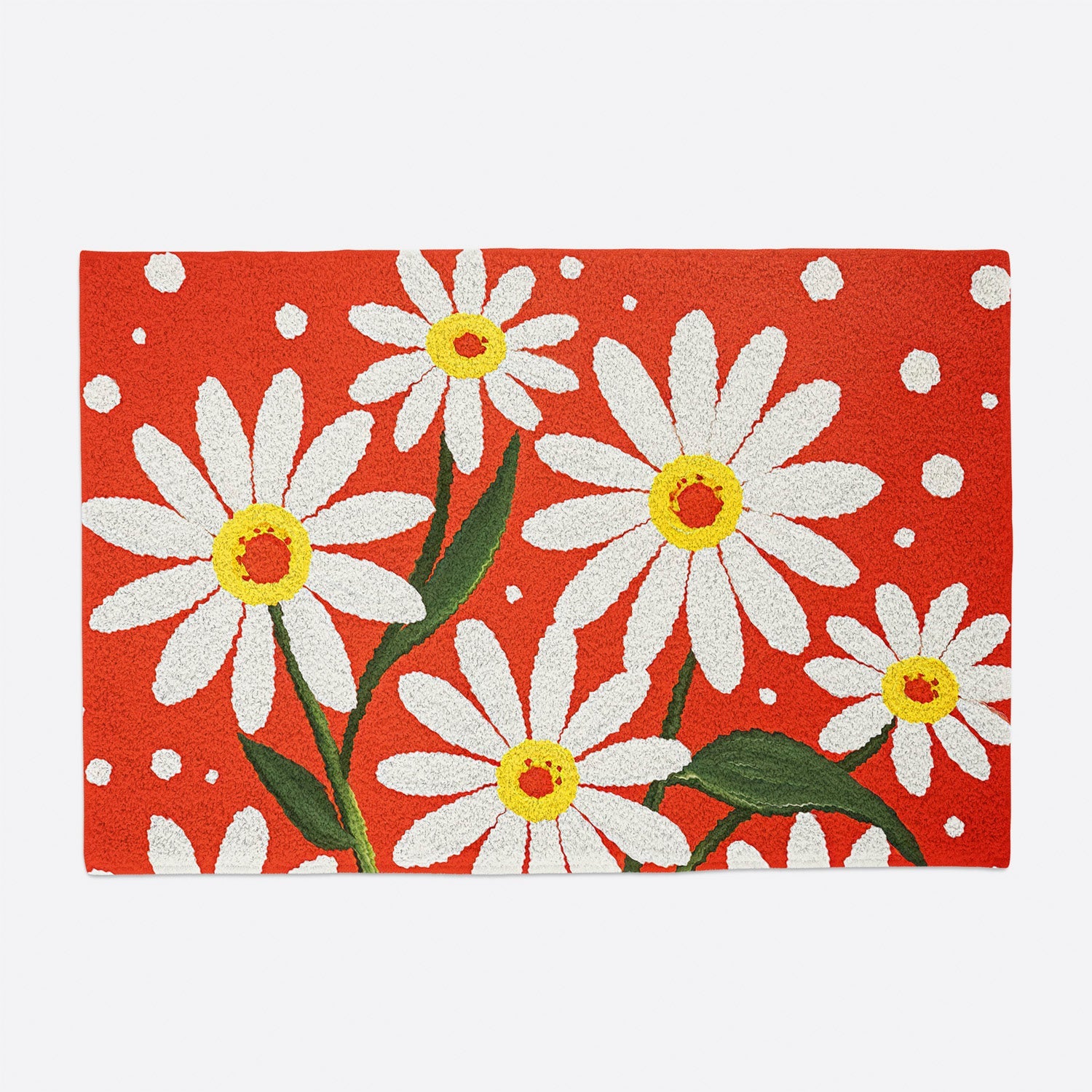 Feblilac Red White Daisy Tufted Bath Mat