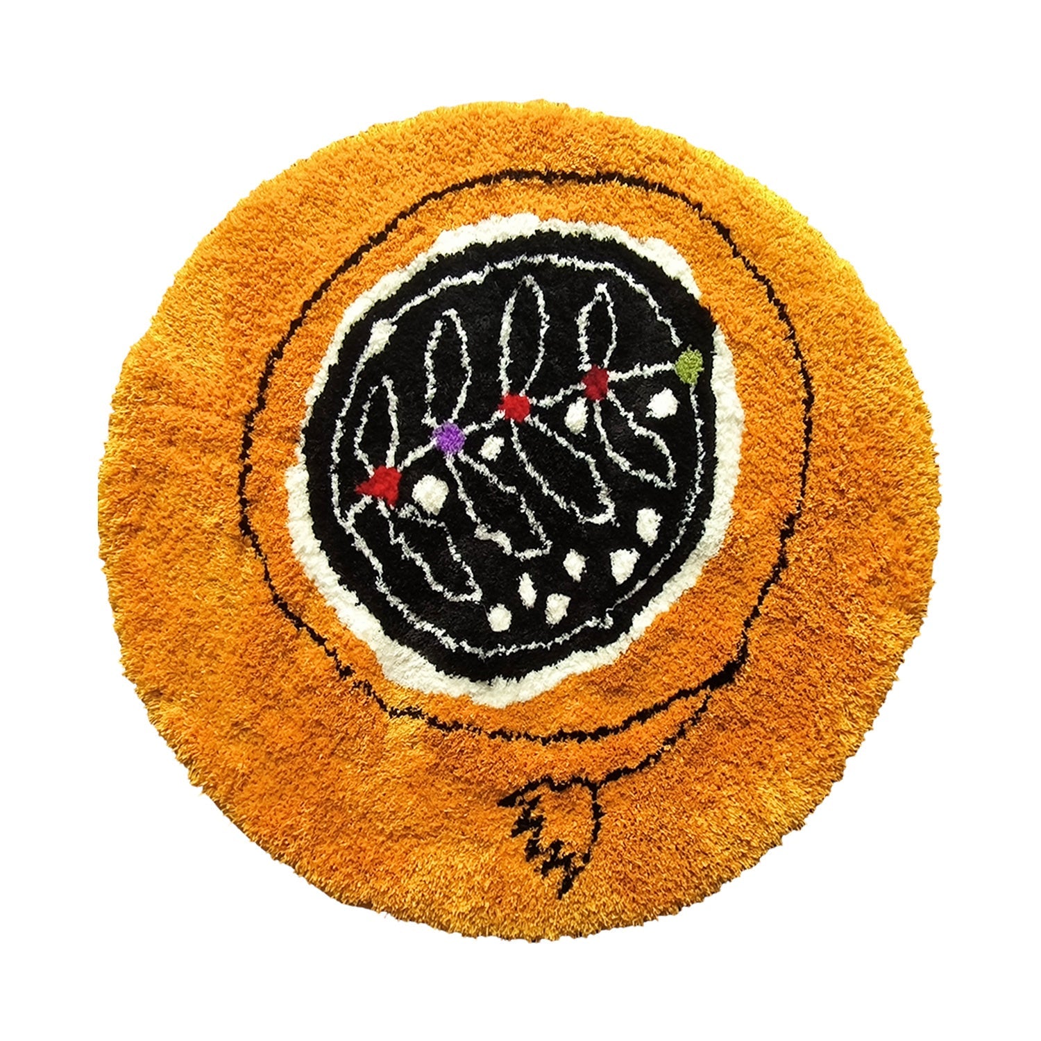 Feblilac Round Orange Background Black and White Flowers Tufted Bath Mat by Liz Gamberg Studio from US - 31.5"x31.5" or 80x80cm is backordered and will ship as soon as it is back in stock.