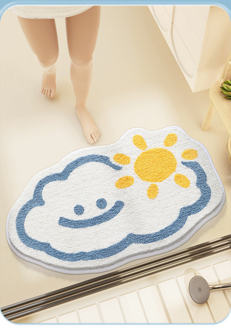 Feblilac Sunshine White Clouds Tufted Bath Mat