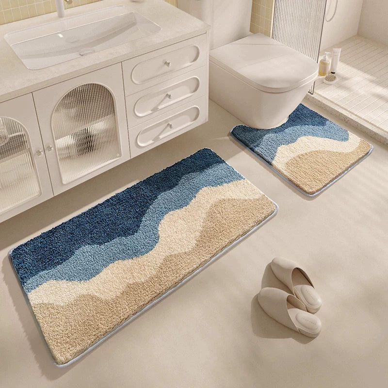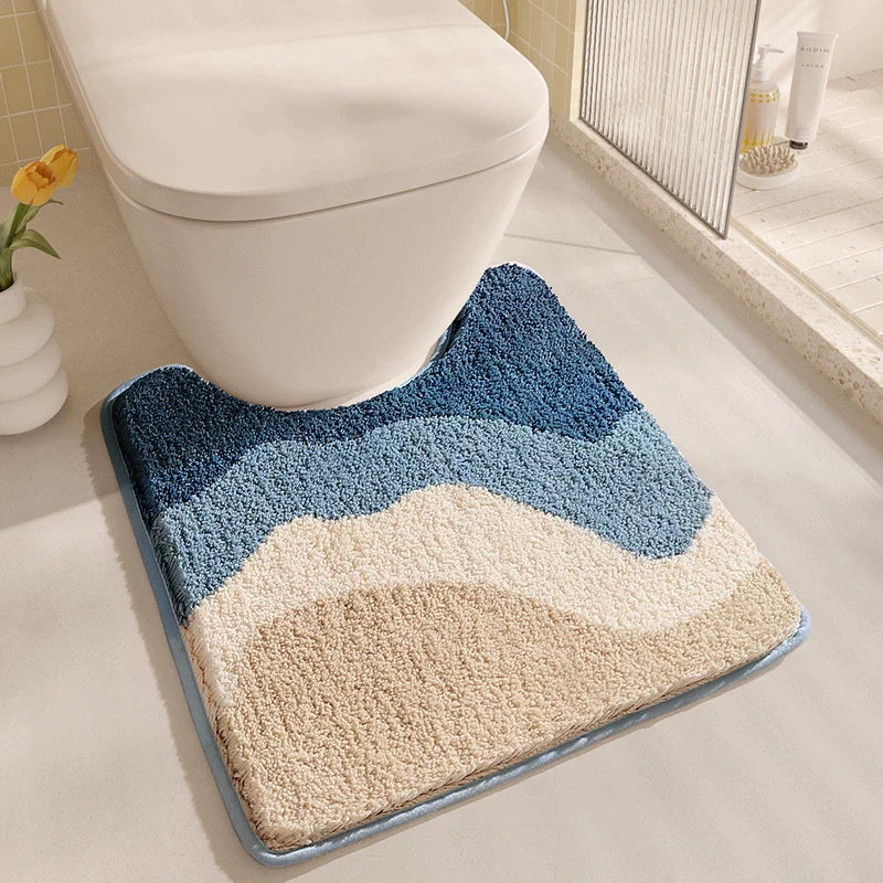 Feblilac Waves Tufted Bathroom Mat Toilet U-Shaped Floor Mat