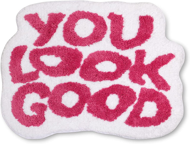 Feblilac You Look Good Bath Mat Pink Cute Bathroom Rugs for Girls Microfiber Funny Shower Preppy Bathroom Decor Non-Slip Washable Mat