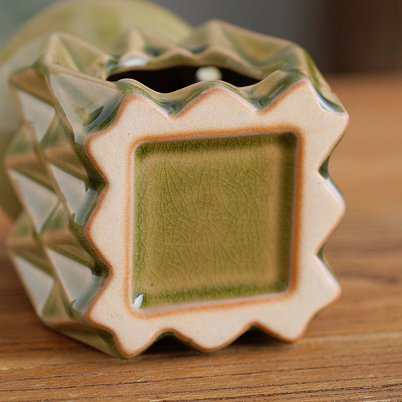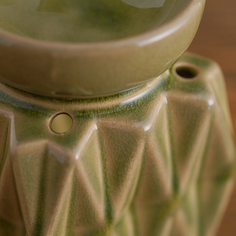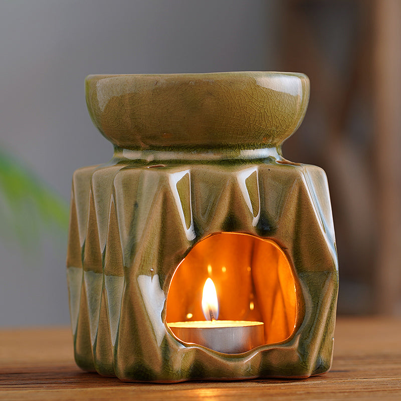 Retro Ceramic Aromatherapy Oil Lamp | Green Diamond Design | Aroma Burner