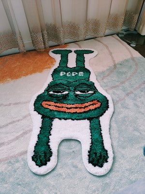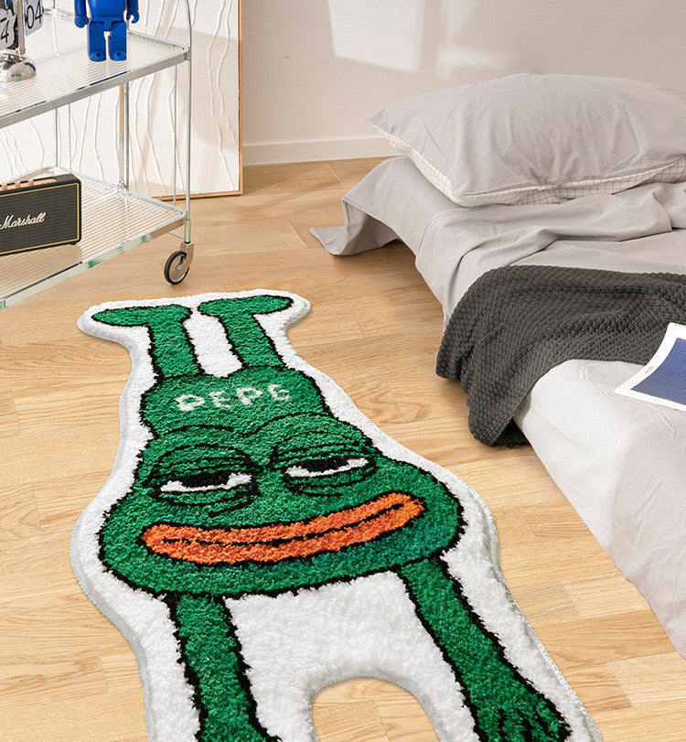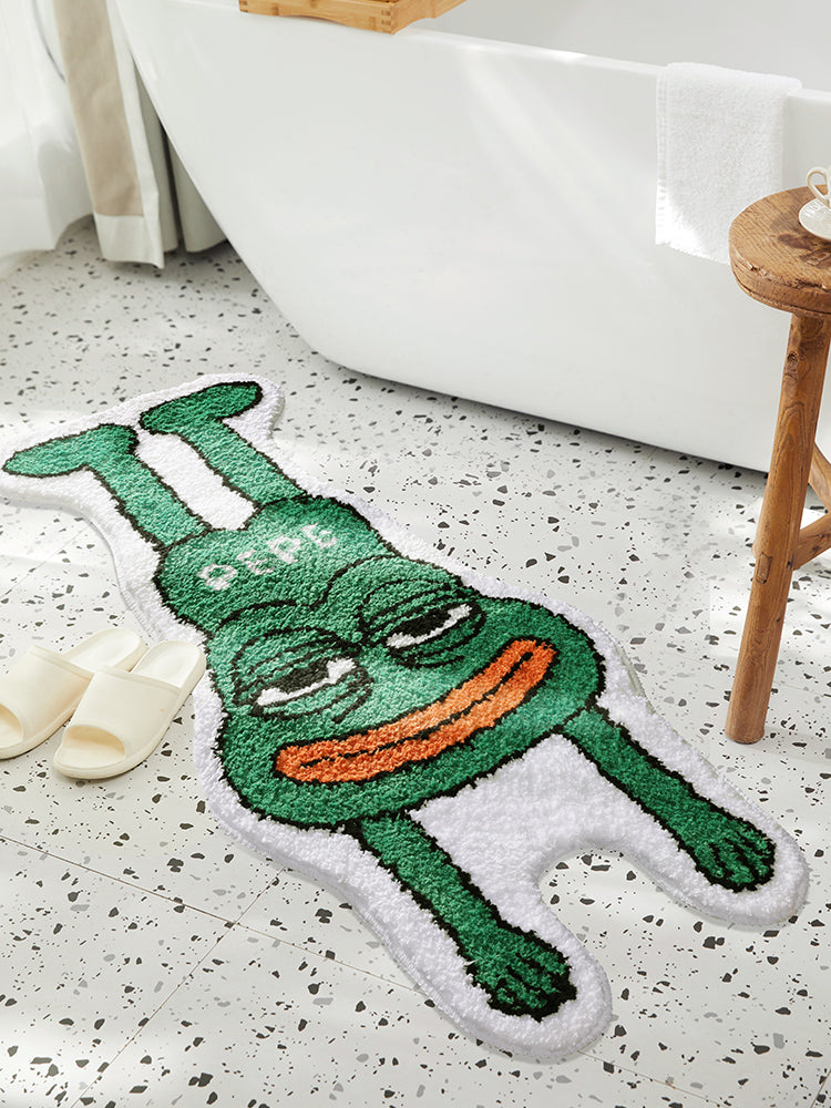 Green Frog Bath Mat Bedroom Rug, Funny Cartoon Animal Soft Plush Water-Absorbent Mat, Machine Washable