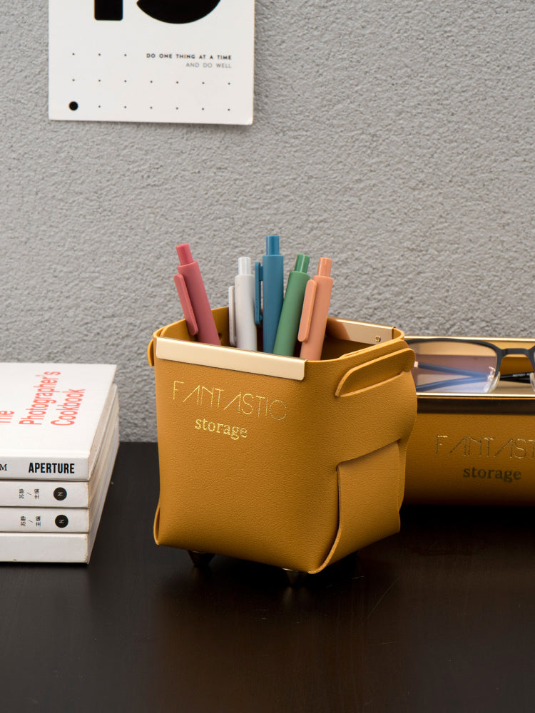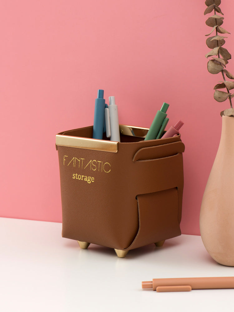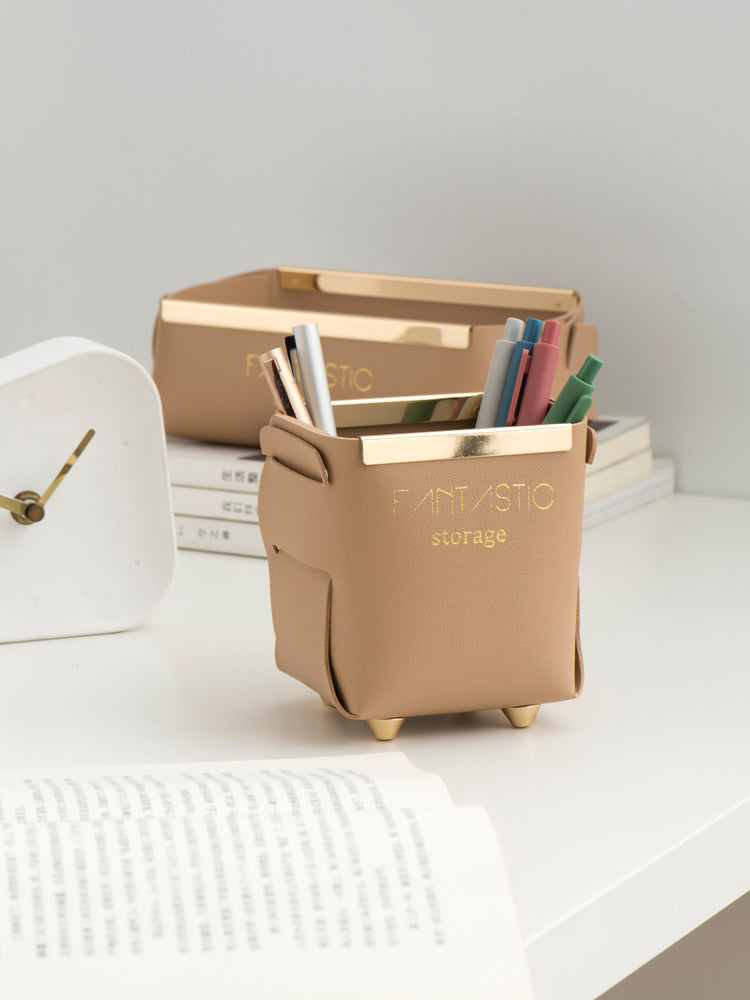 Nordic light luxury Phnom Penh leather storage tube pen holder makeup brush holder household debris remote control storage