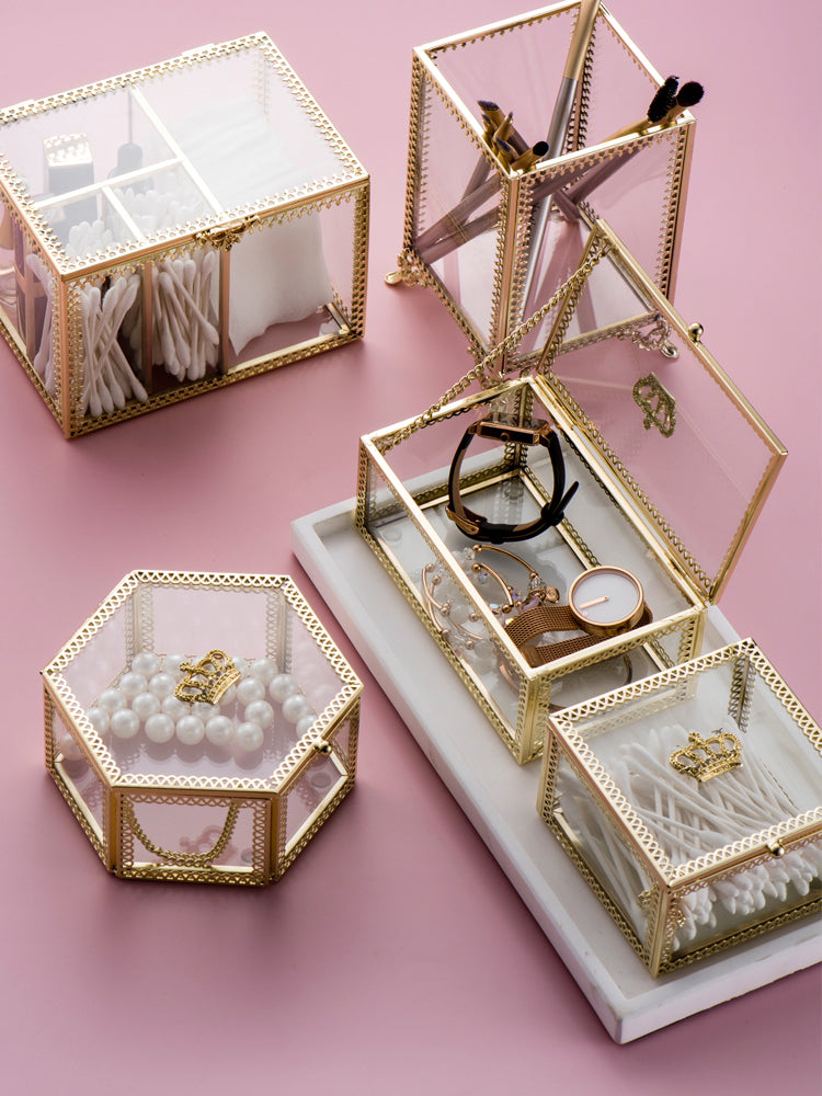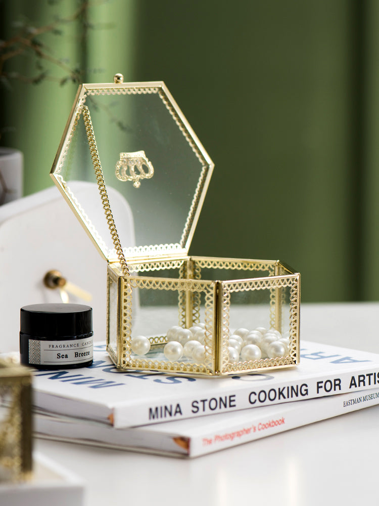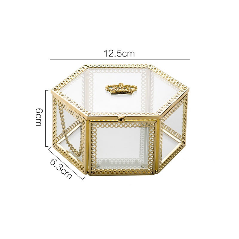 Nordic style light luxury copper bar glass crown jewelry box jewelry ring storage box cosmetic box ornaments - Hexagon is backordered and will ship as soon as it is back in stock.