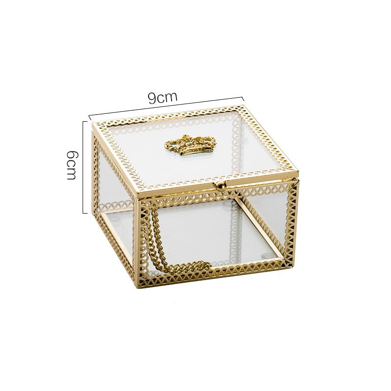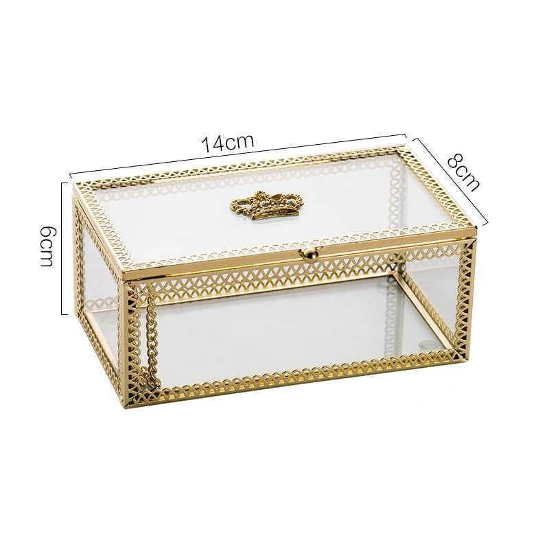 Nordic style light luxury copper bar glass crown jewelry box jewelry ring storage box cosmetic box ornaments