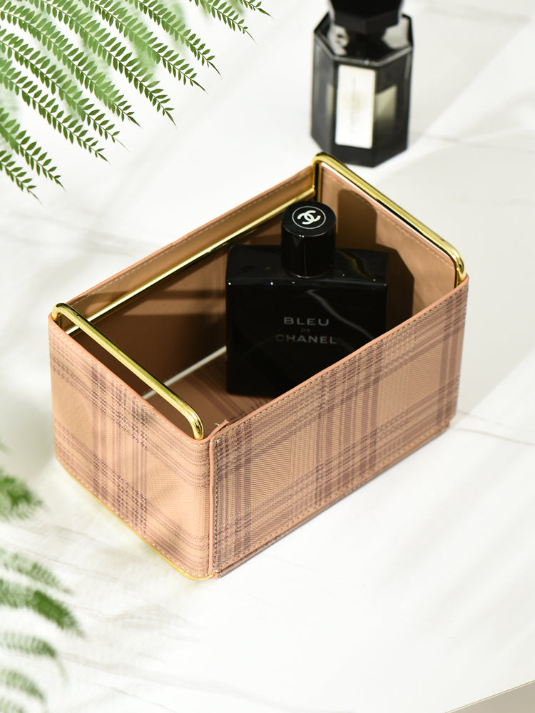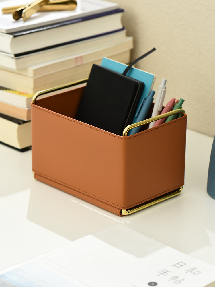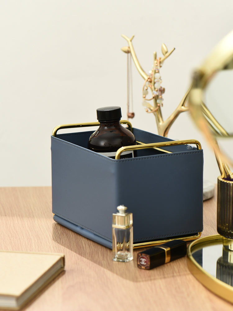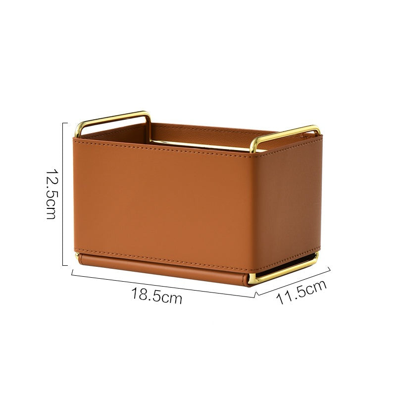 Nordic style light luxury wrought iron leather storage basket cosmetic remote control storage box desktop sundries basket